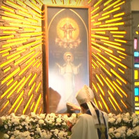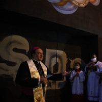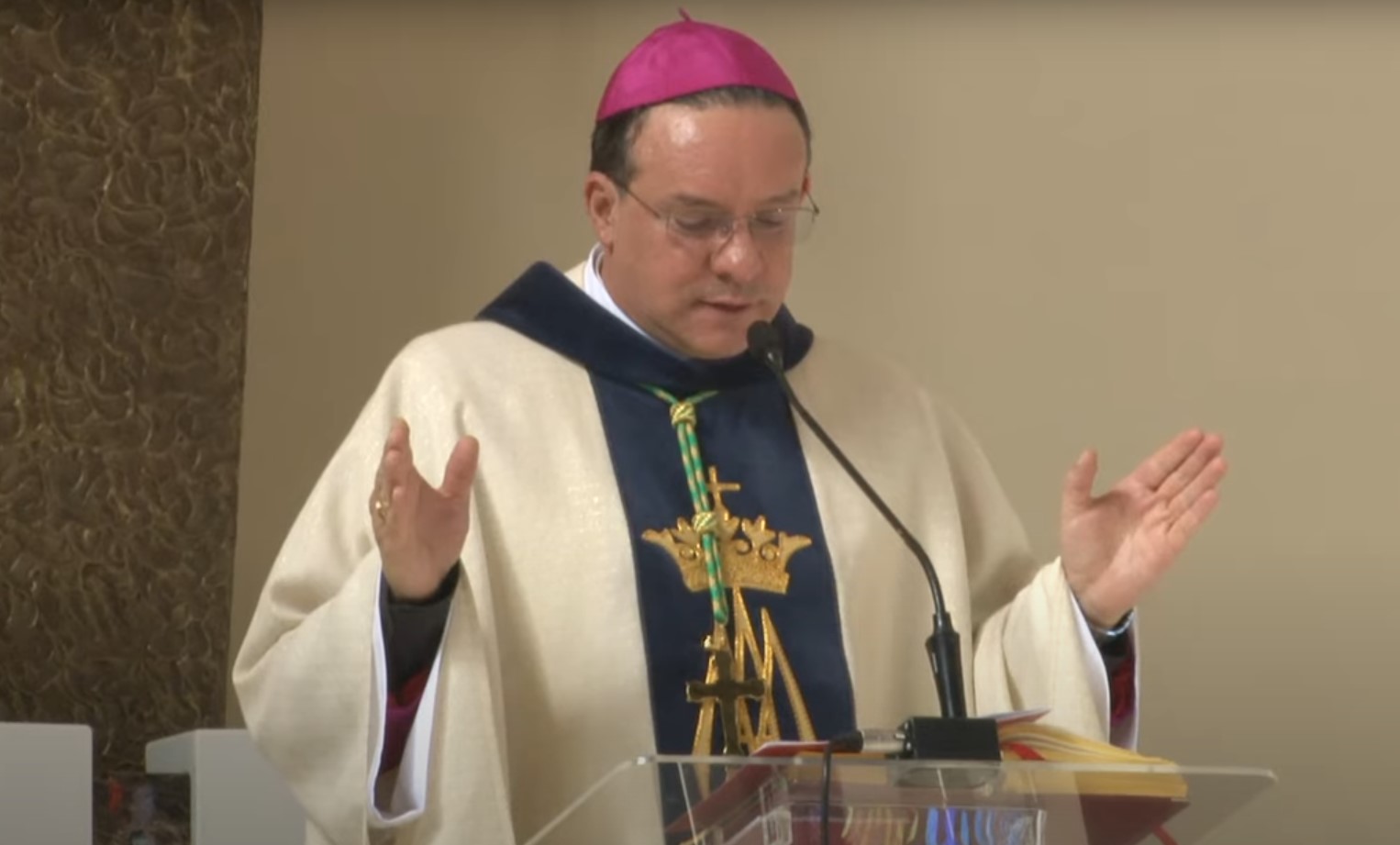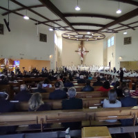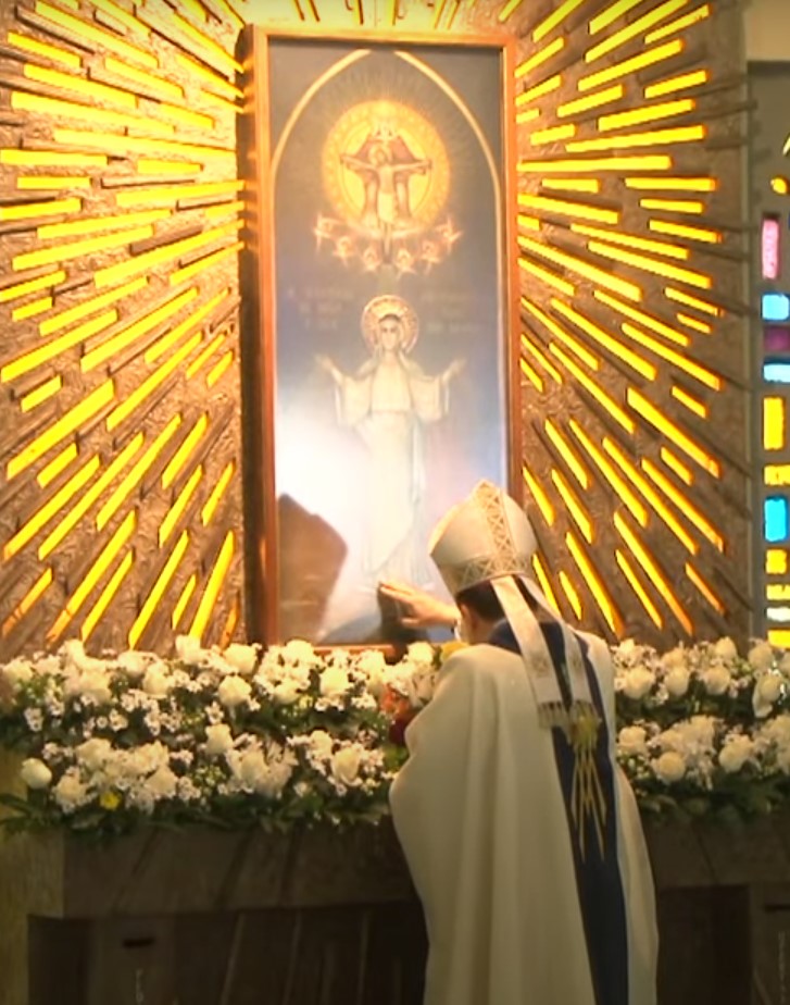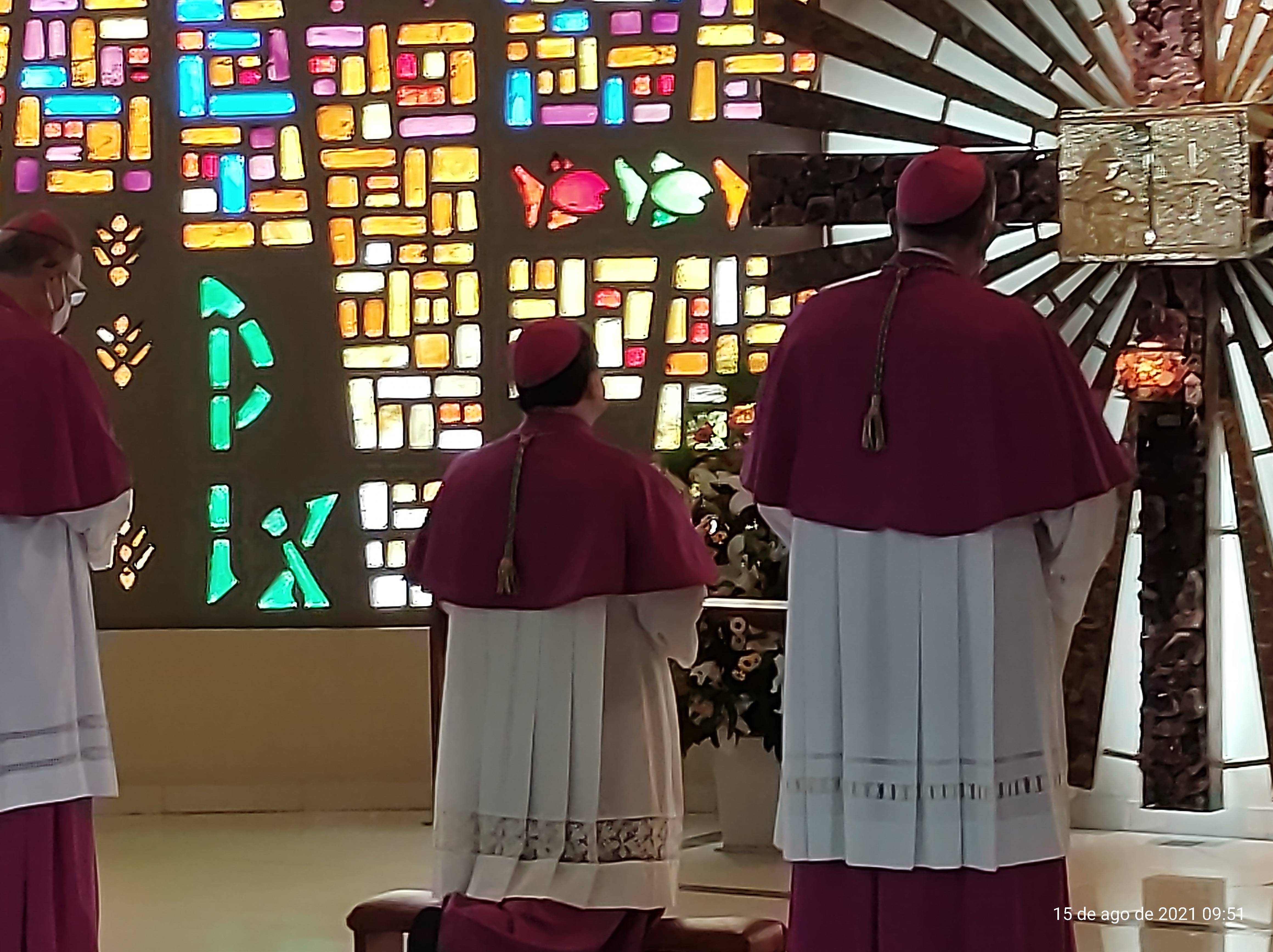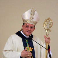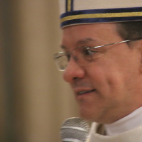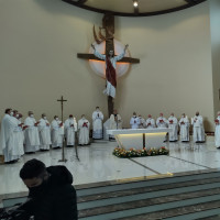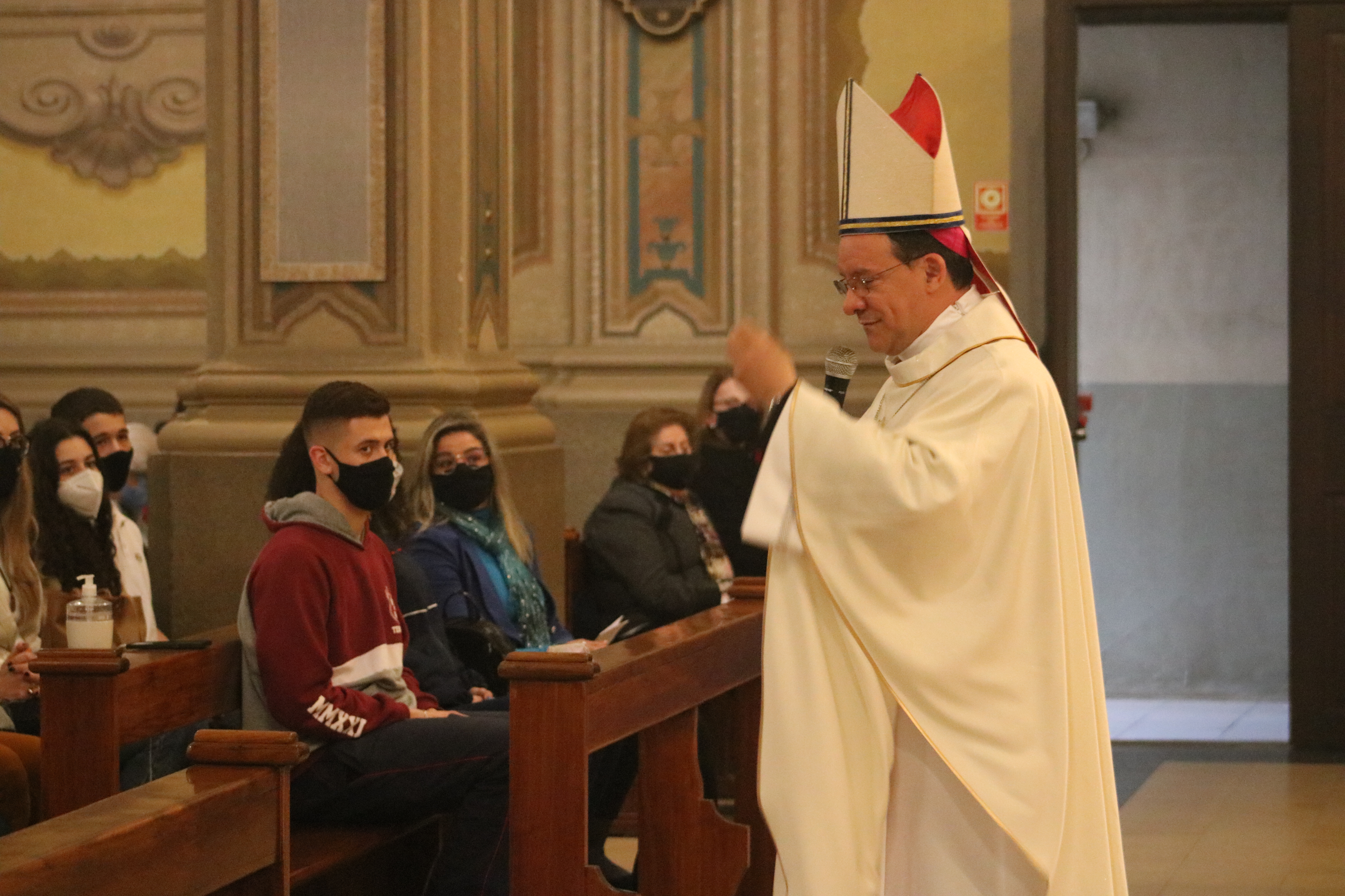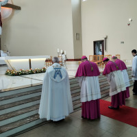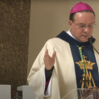 Dom Leomar conclui sua homilia pedindo a intercessão de Santa Maria e se dirigindo ao clero e ao povo de Santa Maria: "enfrentemos juntos os dias luminosos e as noites escuras que virão. Juntos, seremos felizes pois caminharemos unidos, sinodalmente, nas estradas do Senhor. Aqui estou, povo de Deus da Arquidiocese de Santa Maria, sou cristão convosco e para vós eu sou o vosso bispo."