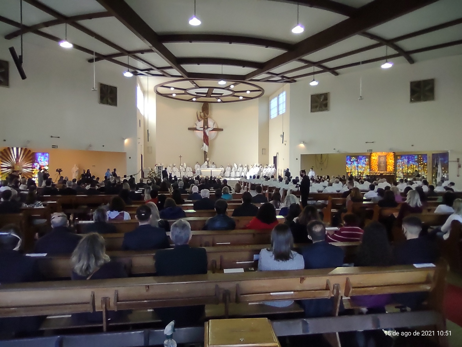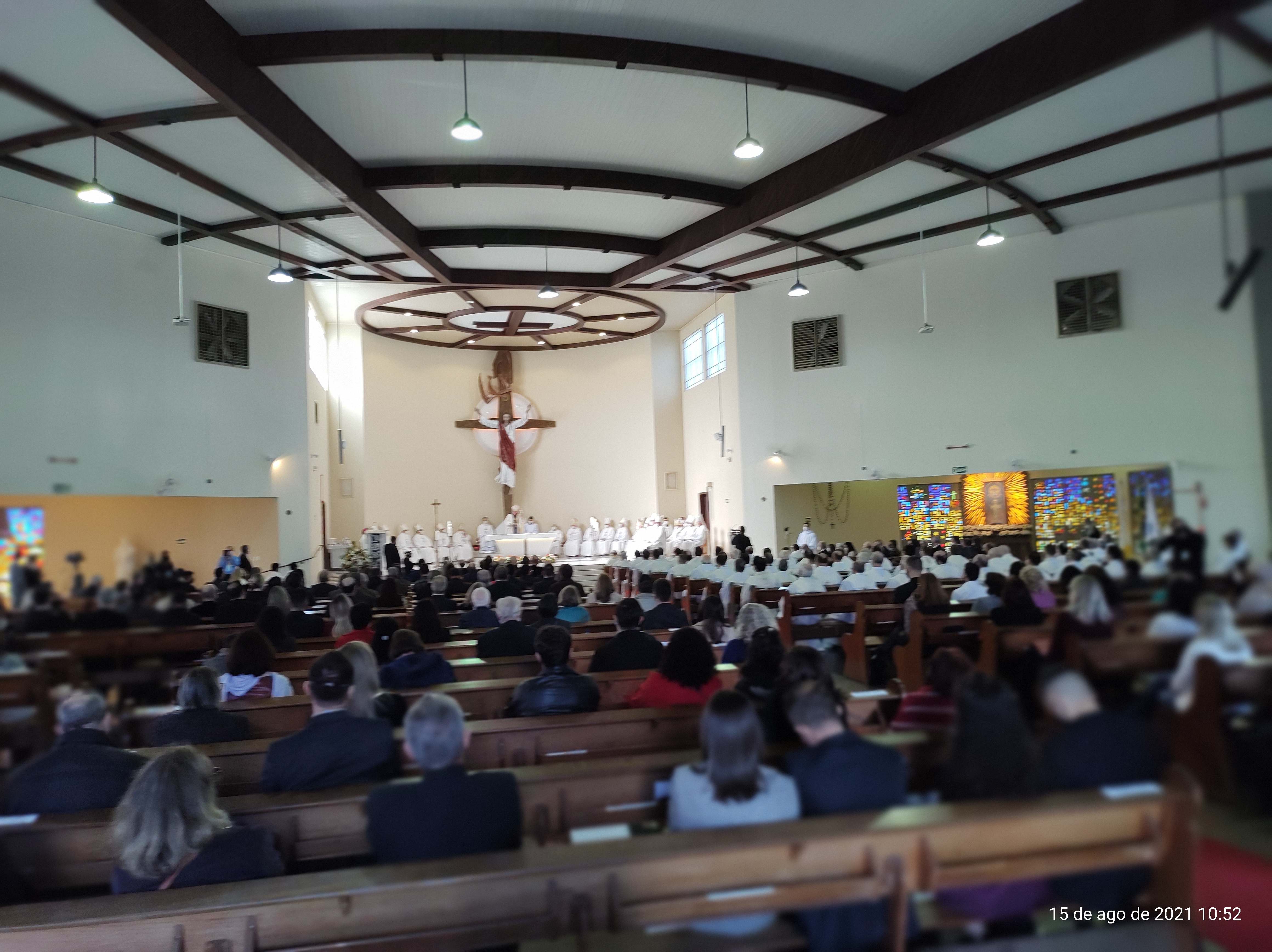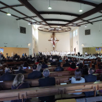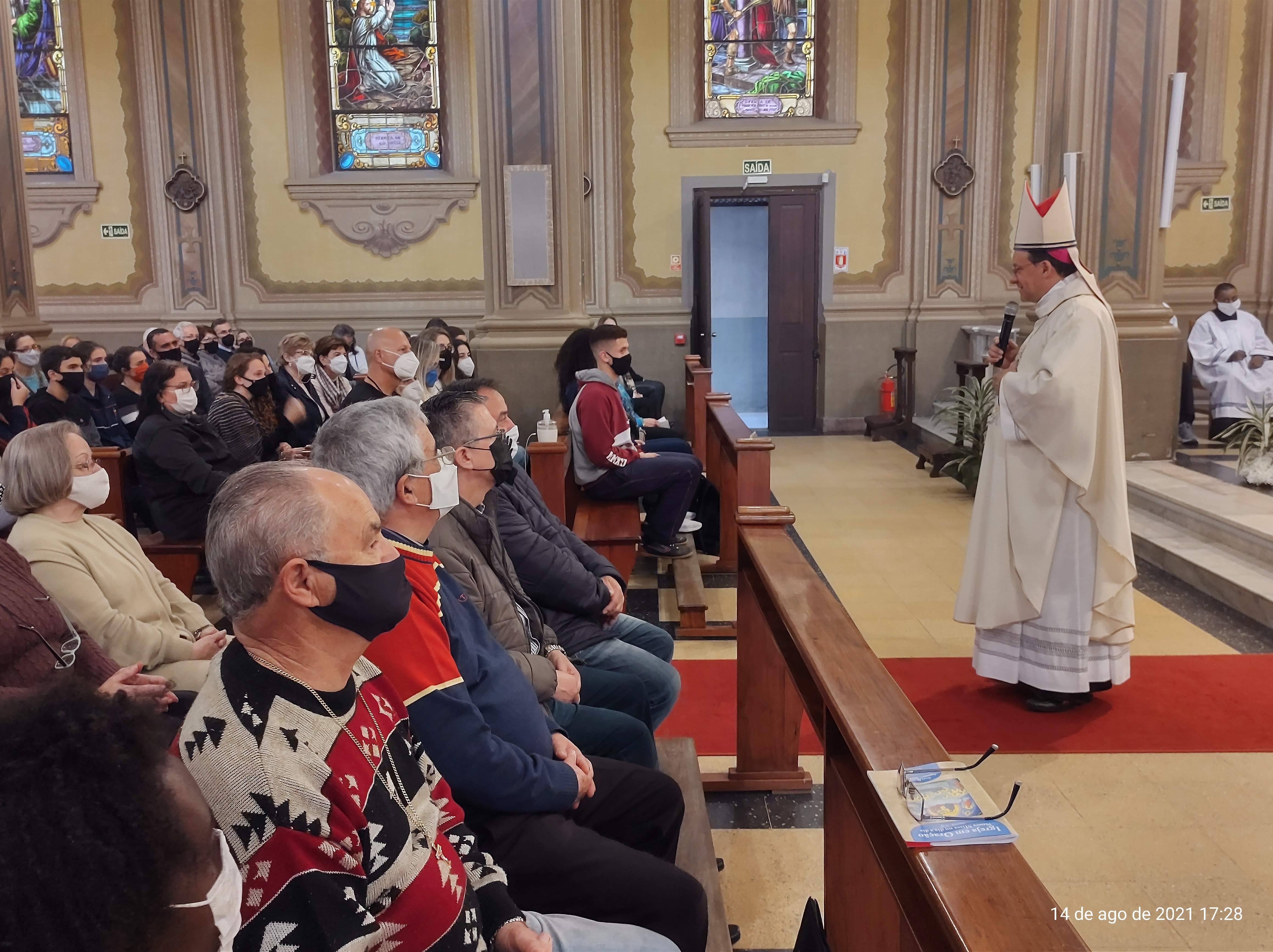 "Neste 15 de agosto também celebramos os 111 anos da criação da Diocese de Santa Maria. O Santo Padre Francisco olhou para a porção do povo de Deus e me designou para exercer aqui o múnus episcopal. Este chão é marcado por etnias diferentes, encontro de culturas, universitários, militares, trabalhadores e tantas atividades. Eu aqui vim para servir em nome de Jesus, acolho todas as alegrias e esperanças e recolho em prece todas as preocupações e tristezas desta região", destacou Dom Leomar, lembrando também a tragédia da Boate Kiss, em janeiro de 2013.