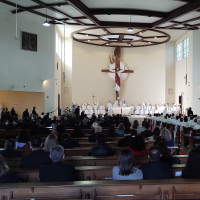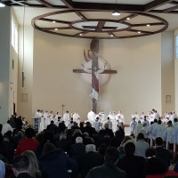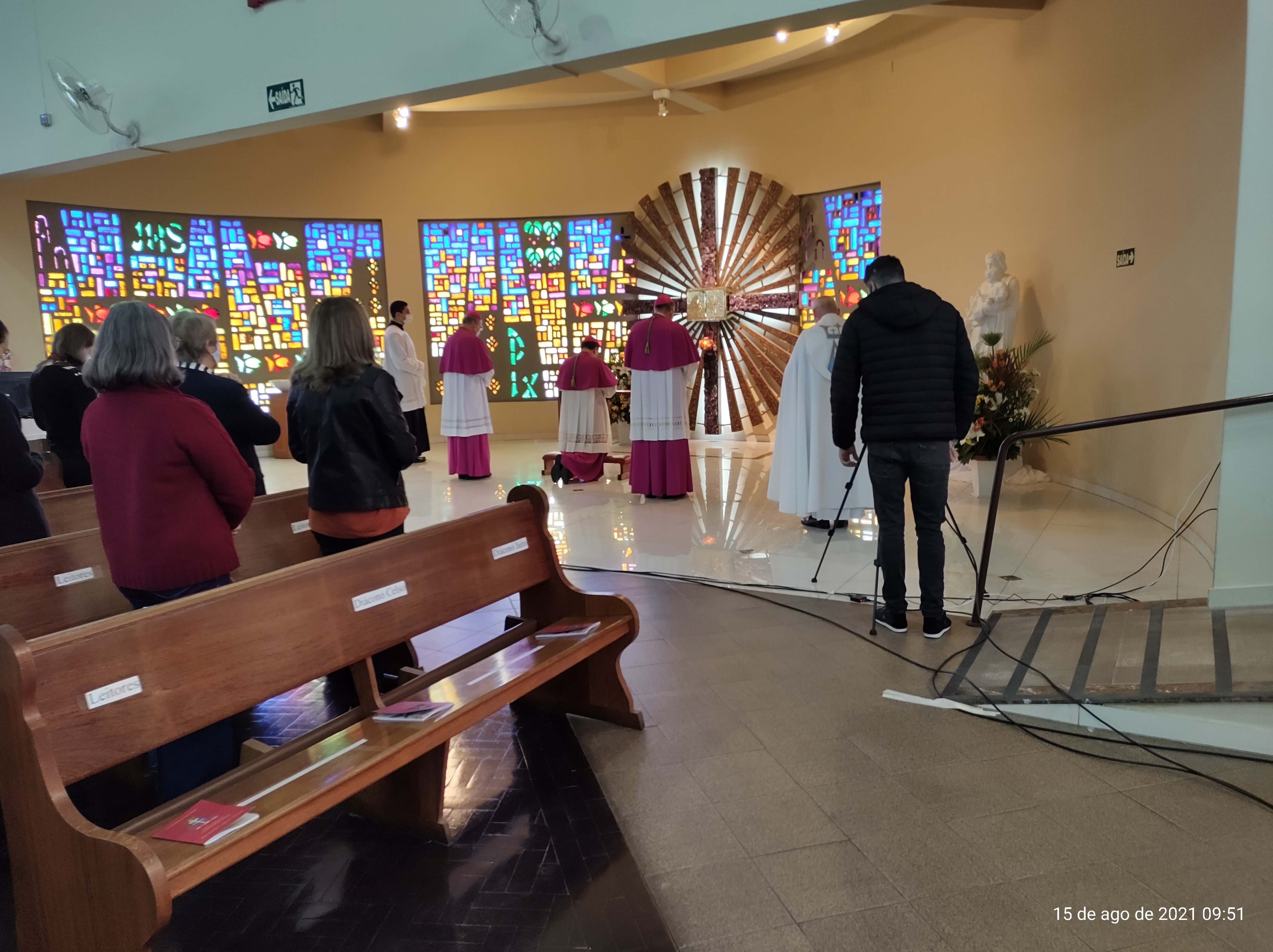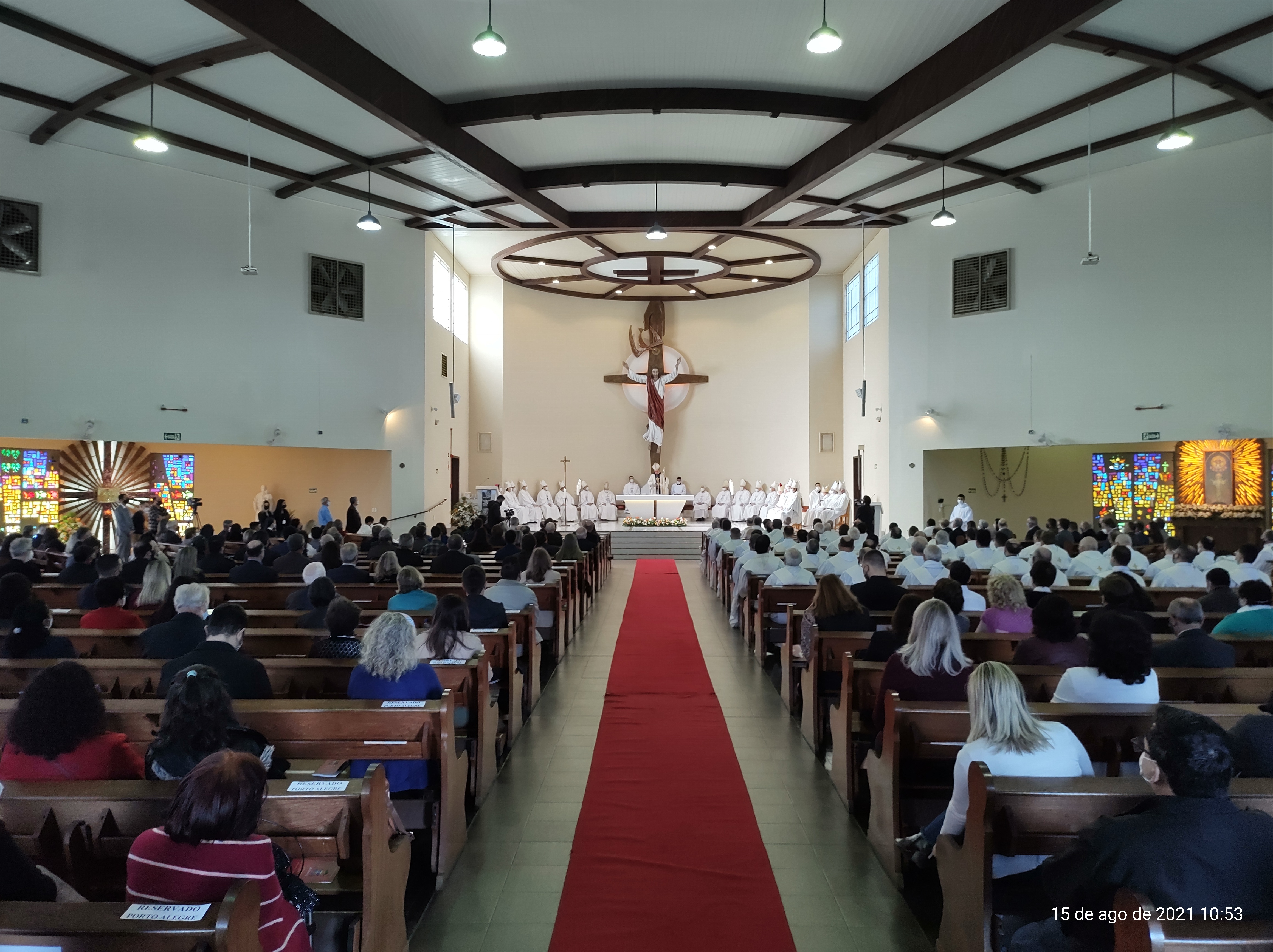 A cerimônia, que contou com a presença de Dom Jaime Spengler, Dom Aparecido Donizeti, Dom Adilson Pedro Busin e Dom Darley Kummer, representando a sinodalidade e fraternidade diante da nova missão recebida por Dom Leomar, aconteceu na Basílica Santuário Nossa Senhora Medianeira de Todas as Graças, em Santa Maria.