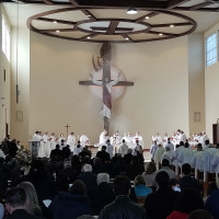 Dom Leomar Brustolin iniciou sua homilia com a saudação a todos os bispos presentes, amigos, familiares, povo e clero de Porto Alegre e Santa Maria e todas as pessoas presentes na celebração e que acompanharam pelas redes sociais.