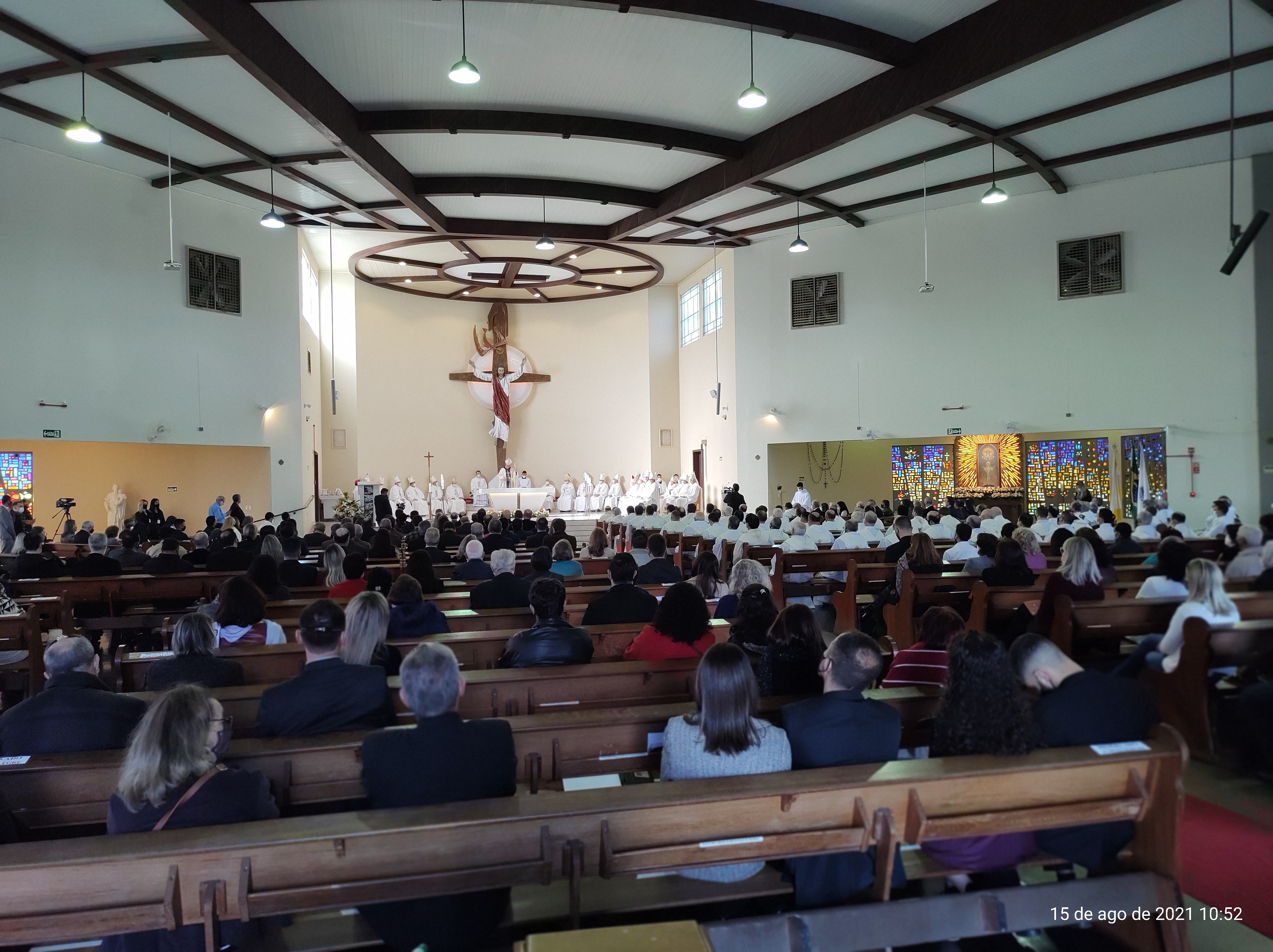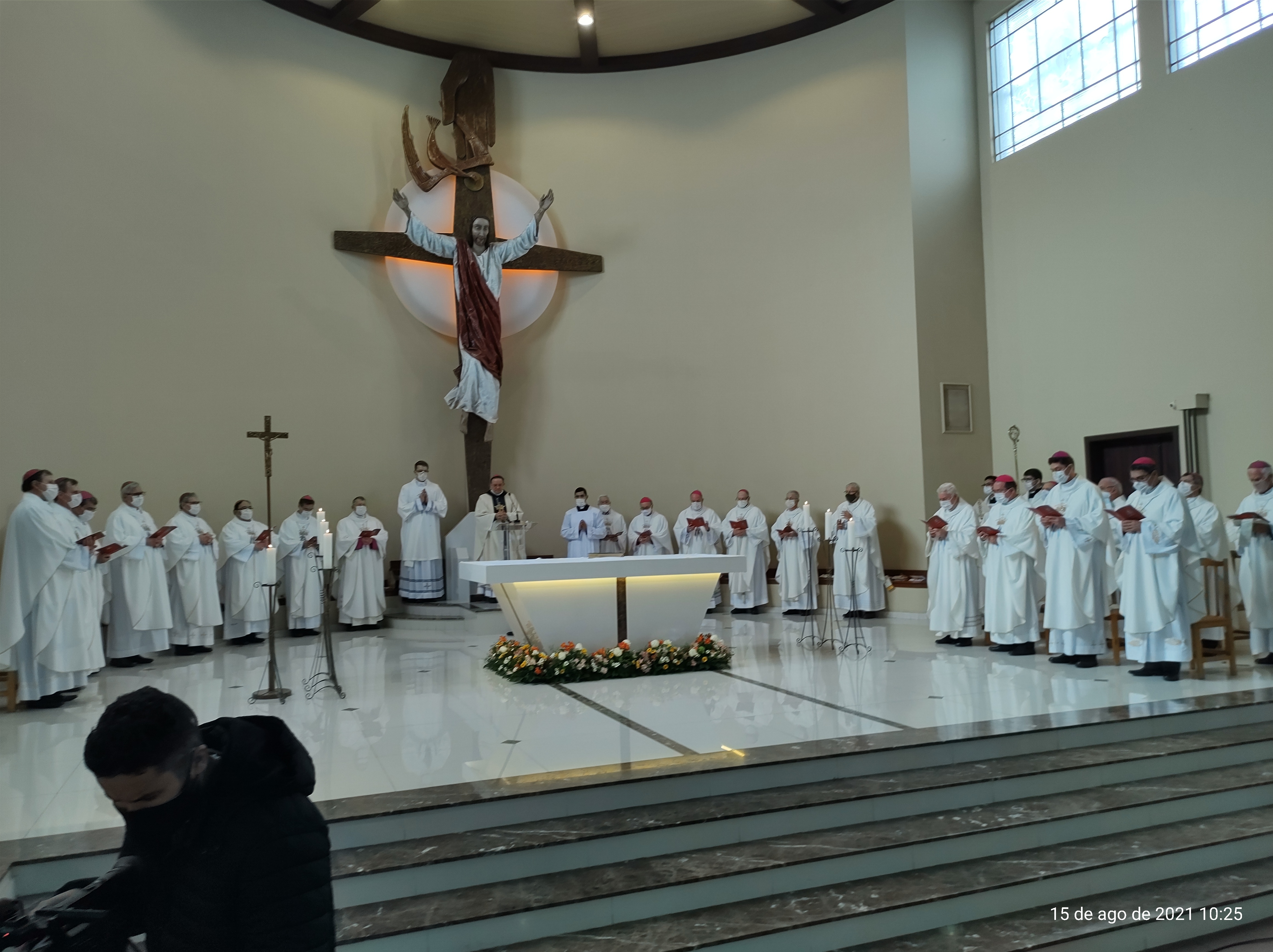 Valendo-se das palavras de Santo Agostinho ao povo de Hipona, Dom Leomar falou sobre sua disposição em trabalhar pelo povo da Arquidiocese de Santa Maria fortalecendo o testemunho, a comunhão e o serviço, ensinando, santificando e governando, tendo o Cristo como primeiro. "É fácil comungar, difícil é se tornar Eucaristia. Somos chamados à sinodalidade, a caminharmos juntos", destacou ele na celebração em honra à Assunção de Nossa Senhora.