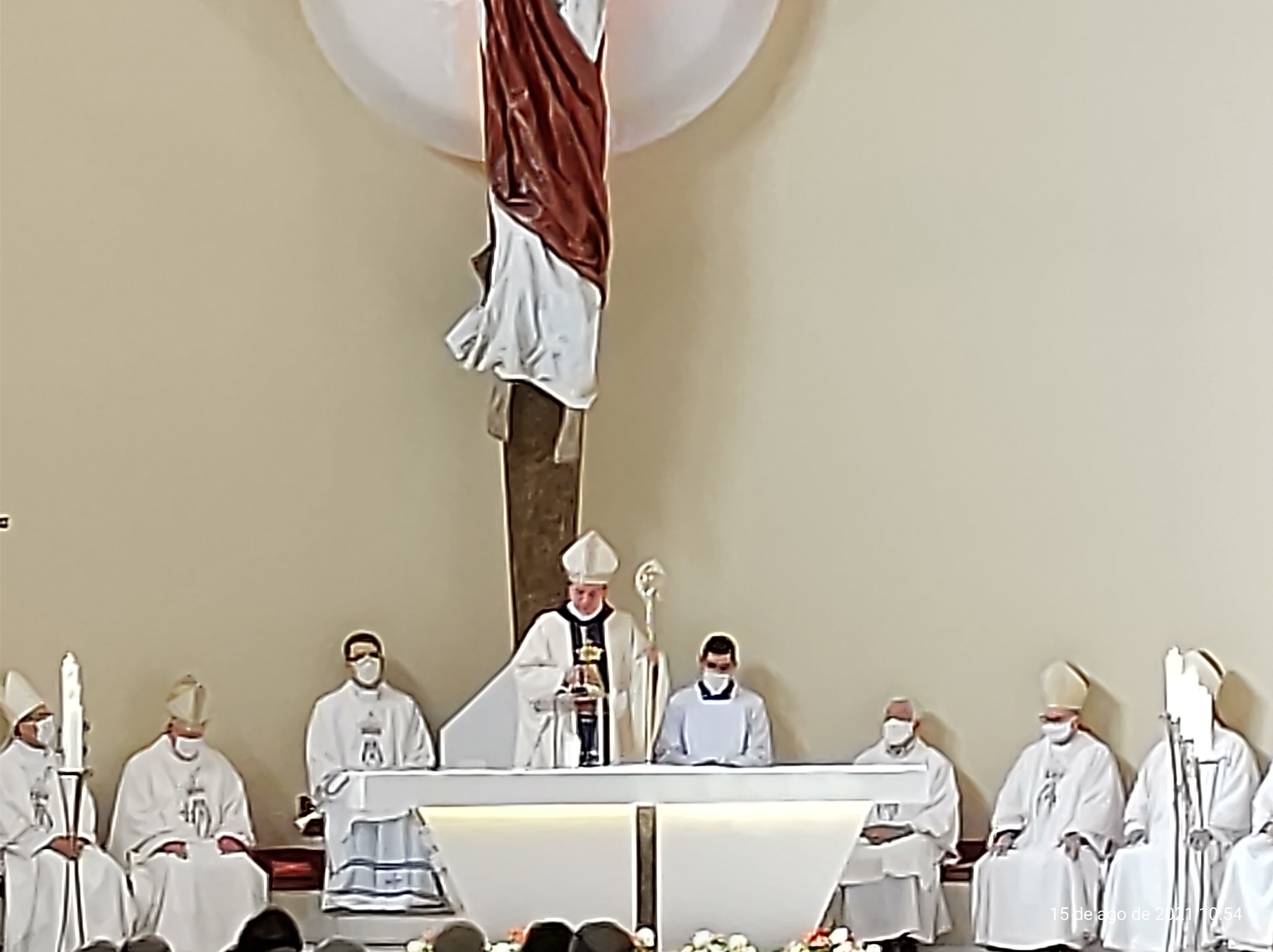 "Celebramos hoje a Solenidade da Assunção da Virgem Maria. No Evangelho de São Lucas, percebe-se como em Maria Deus escolhe e eleva os humildes ao mais alto grau. Nesta festa se concilia de forma perfeita o que poderia parecer paradoxal, a humildade e o triunfo, a modéstia e a elevação, a pequenez e a grandeza. Assim Maria nos educa para sermos humildes servidores do Senhor", apontou ele.