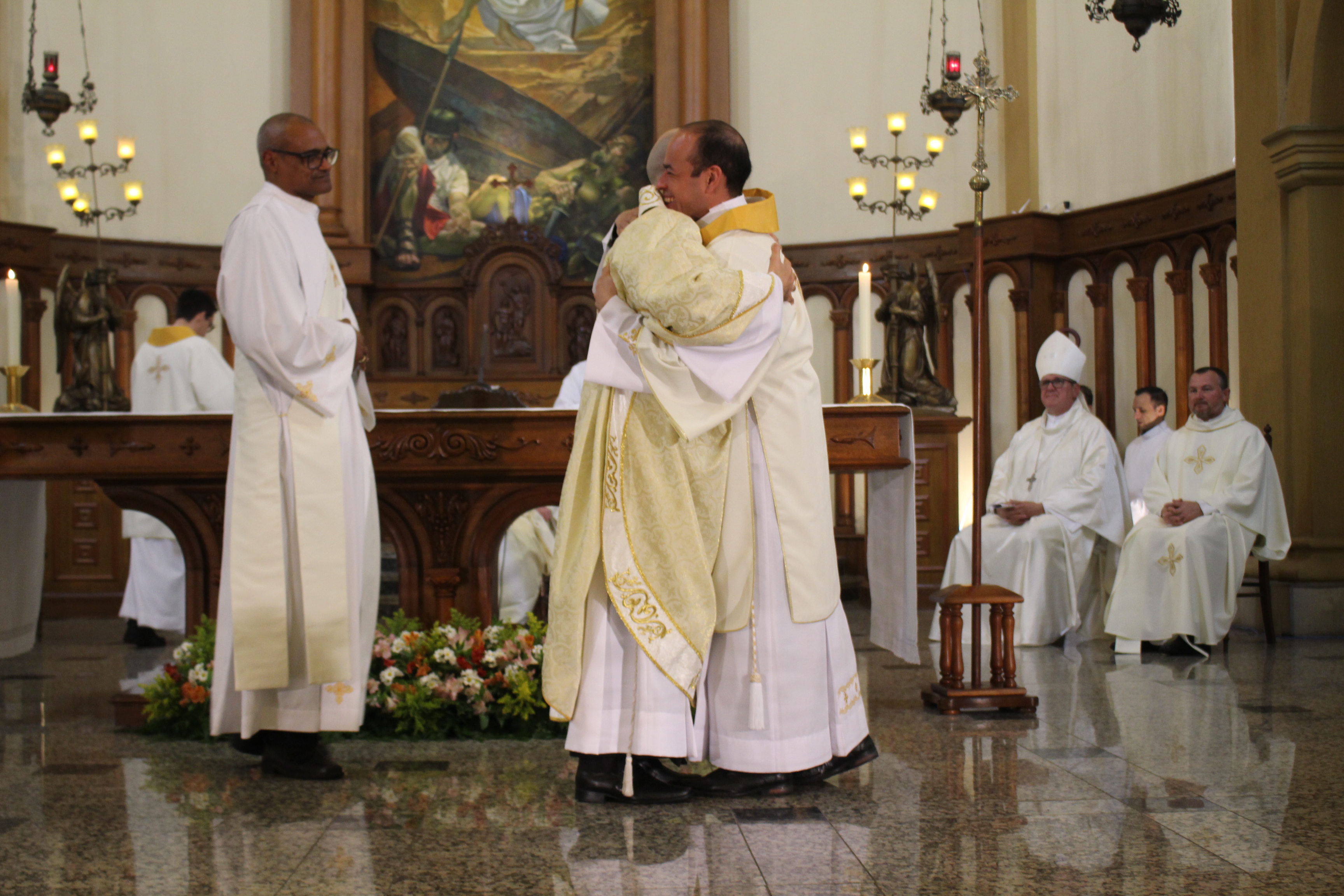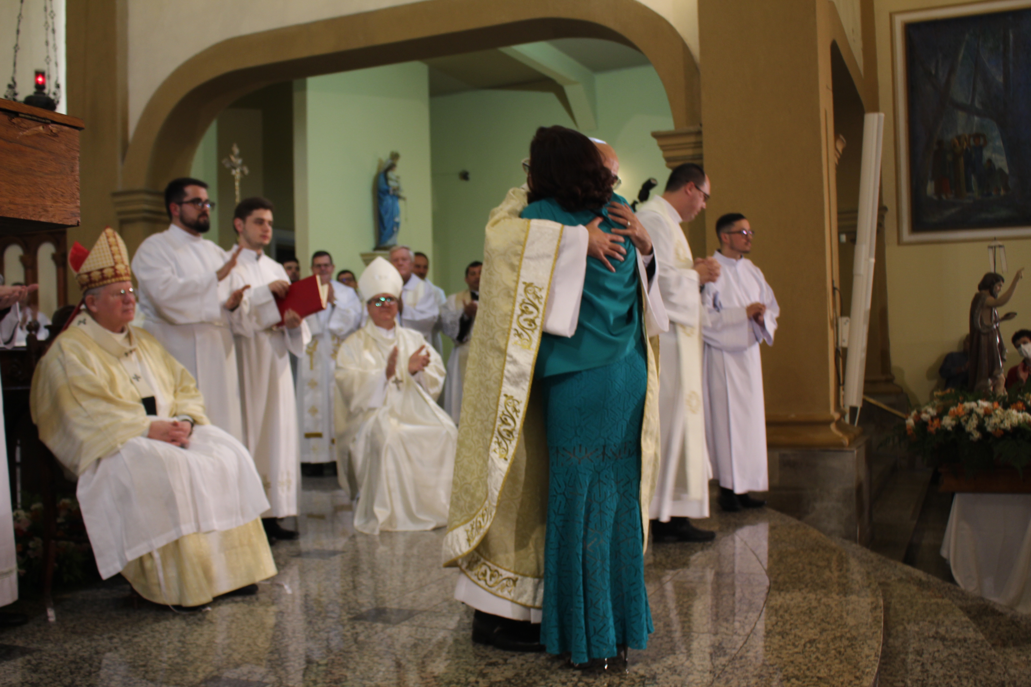 Agradeço a minha família. Certa vez, a minha mãe me perguntou se eu tinha resolvido ser padre por decepção com o matrimônio, pois o casamento dos meus pais havia “Falhado”. Mas não. Apesar da separação, do divórcio, o matrimônio de vocês não falhou. Foi fértil, deu frutos. Três filhos e um neto. Obrigado mãe pela proximidade, pelo amor. Em me compreender, proteger. Te amo. Amo meus irmãos, nossos agregados todos, os parentes. Amo também aqueles que partiram e foram testemunhas deste amor na nossa família. Em especial minha madrinha e meu pai, vítimas da Pandemia. Antes de partir, meu pai me presenteou com a casula com a qual fui revestido. Obrigado Pai. Te amo.