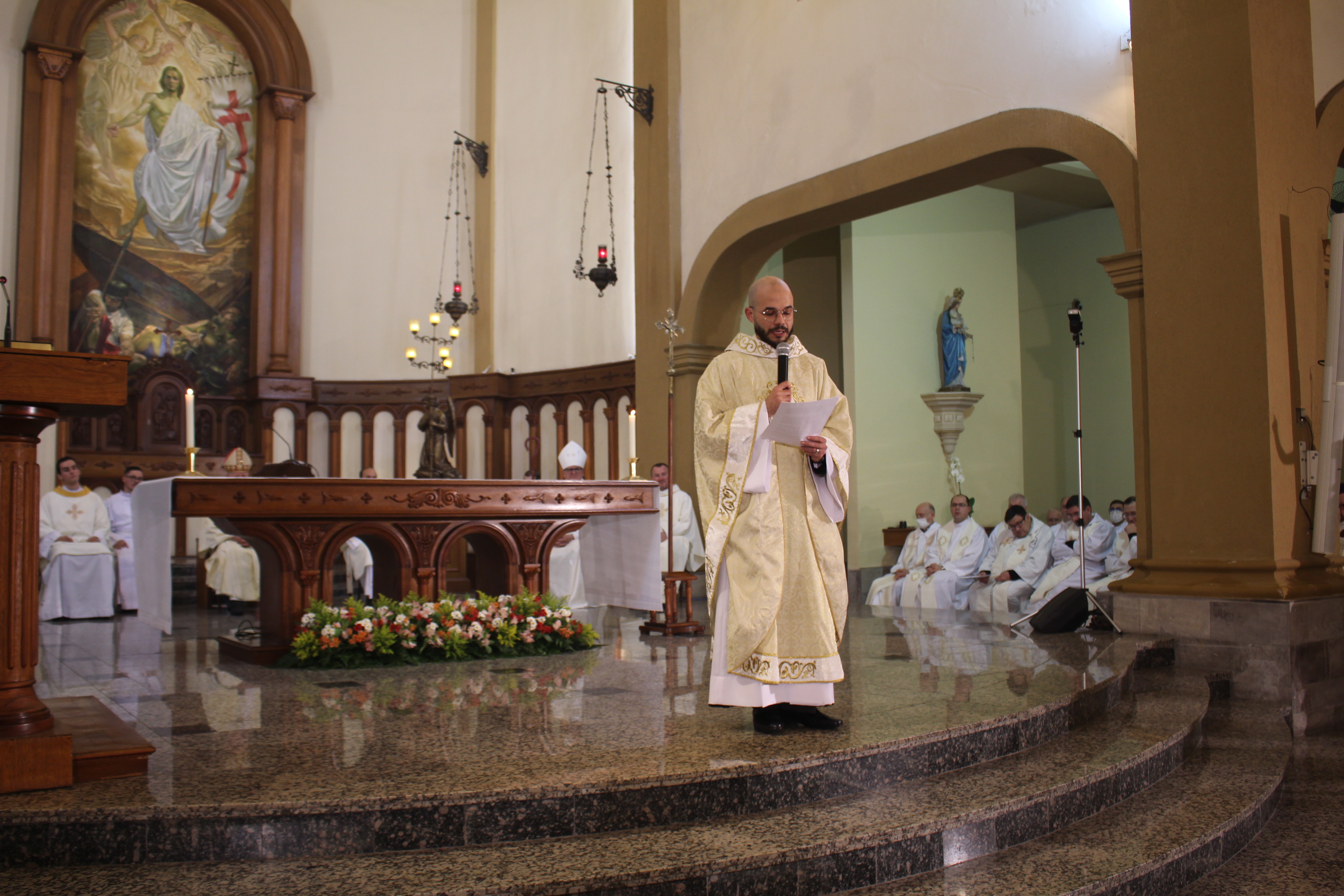 Também nos alegramos com a disposição do Henrique em acolher o sacramento da Ordem no grau de presbítero. Também a vocação traz as marcas do mistério. O mistério. E como Isabel, seus parentes e vizinhos, também nós rogamos ao Senhor que nos envie a ti, Henrique, para cooperar com nosso ministério, no seio deste presbitério, entre irmãos. No seio do presbitério, com o presbitério, na comunhão com o presbitério. Que tu possas ser um homem autêntico e determinado. Do anúncio e da presença entre nós do novo. Da recordação de que a esperança é uma realidade entre nós e de que sempre é possível abrir novos caminhos, mesmo quando tudo parece bloqueado e, às vezes, tem aqueles que querem voltar atrás. Pois a partir da fé sempre é possível o novo, novas oportunidades, novos horizontes. Possas tu, conosco, entre nós, no exercício do ministério e na pertença alegre e generosa ao presbitério, colaborar na preparação de caminhos, de tempos novos para todos sempre, a partir do Evangelho do Crucificado-Ressuscitado. Deus te ilumine.