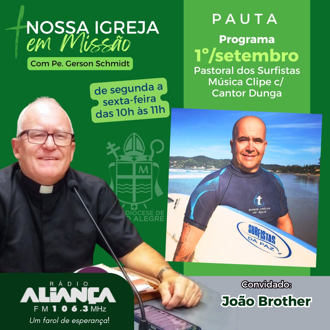 Com mais de 20 anos de estrada e uma missão que une evangelização e cultura do surf, a banda Surfistas da Paz apresentou na última segunda-feira, 01, sua nova música “Ele Andou”, em parceria com o cantor Dunga. A banda esteve ao vivo no programa Nossa Igreja em Missão, da Rádio Aliança FM, que é apresentado diariamente pelo padre Gerson Schmidt.