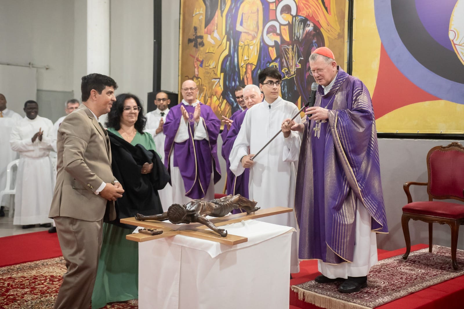 Antes da benção final da Santa Missa festiva dos 40 anos celebrativos, o casal Gleison Luciano e Claudia da Silva Rodrigues, em nome de todas as comunidades, testemunhou a importância do carisma na sua vida de casal, que são abertos à vida, vivência de fé numa pequena comunidade, que “mantém de pé para não cairmos”, lembrando a segunda leitura da liturgia do Terceiro domingo quaresmal. Entregaram um presente ao Cardeal Dom Jaime, uma bela cruz de madeira, recordando o lema episcopal do Arcebispo: "In Cruce Gloriari", que significa "Gloriar-se na Cruz".