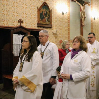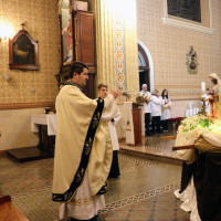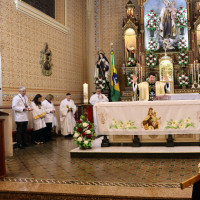 A primeira noite da novena foi celebrada na segunda-feira, 7 de julho, em clima de profunda devoção, com a participação de muitos fiéis. A Eucaristia foi presidida pelo pároco Pe. Charles Kermaunar e concelebrada pelos padres Adilson Kuntzler e Rodrigo Rubi.