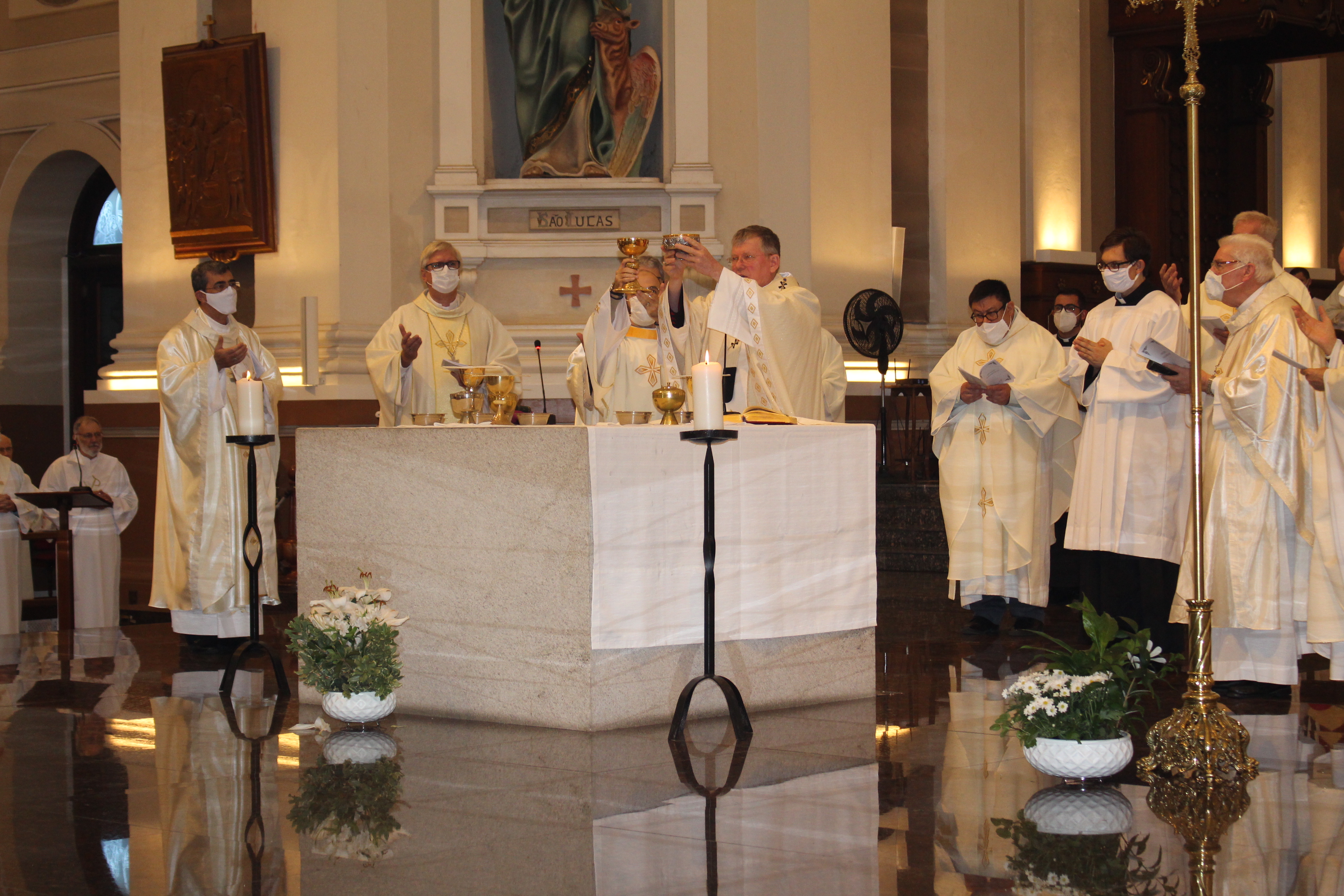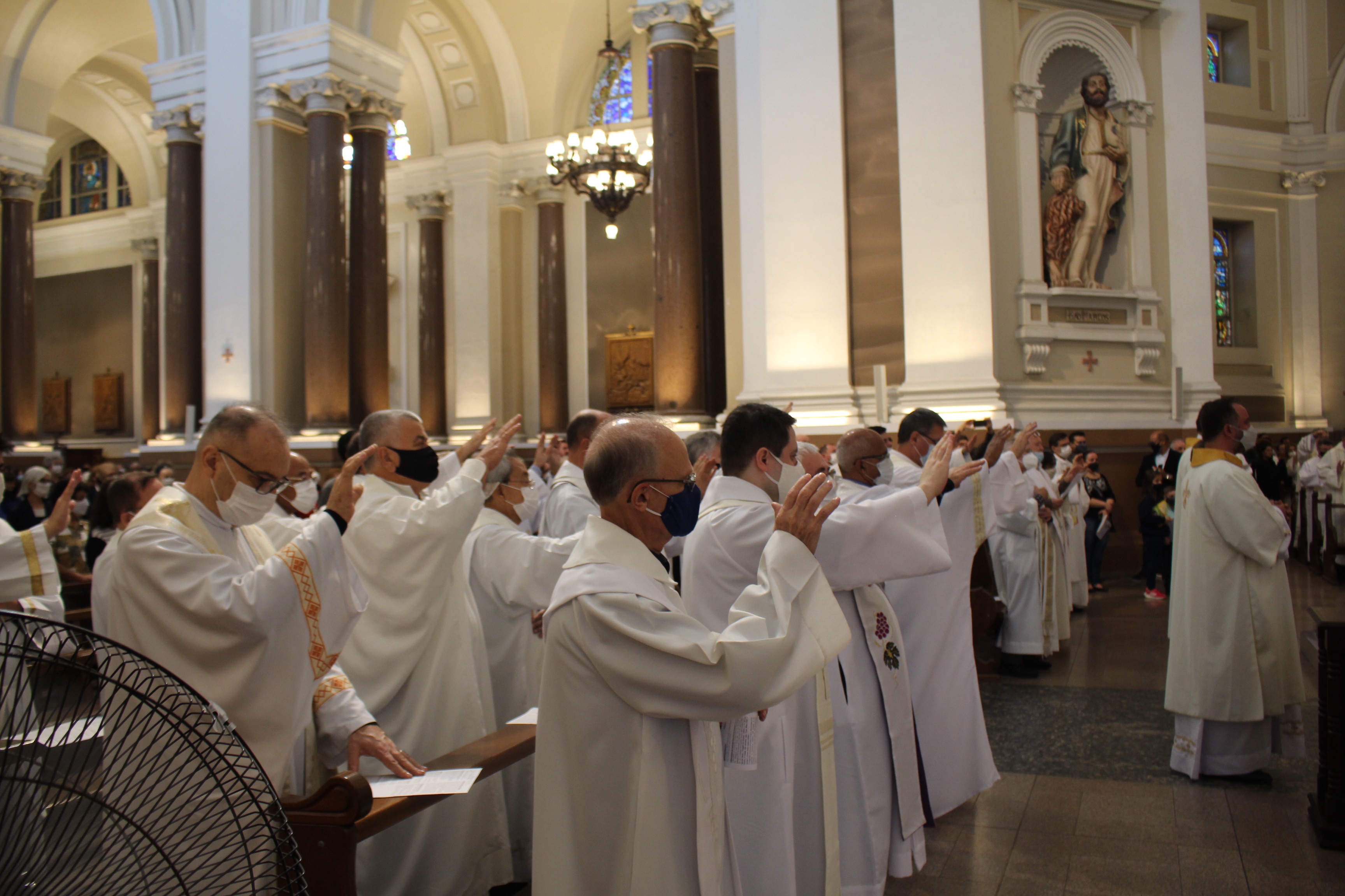 Dom Jaime Spengler convocou ainda todo o povo de Deus presente na Catedral, representando toda a Arquidiocese, a rezar “pelos presbíteros, por nós bispos, diácono e seminaristas, para que unidos possamos levar a bom termo a obra a nós confiada de ir pelo mundo, anunciar o Evangelho e batizar”.
