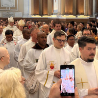 Abramo-nos à graça dos sonhos! Permitamo-nos sonhar! Sonhemos com a esperança que nos vem da experiência da fé, do encontro com a pessoa de Jesus Cristo. Sonhemos juntos a graça da unidade sempre mais intensa no seio da Arquidiocese; sonhemos poder caminhar sempre mais unidos, em sintonia pastoral; sonhemos com um presbitério, um diaconio, com expressões da vida consagrada, seminaristas sempre mais empenhados em conhecer mais e melhor, testemunhar e anunciar o Evangelho. Sonhemos com comunidades sempre mais dinâmicas, vivas, organizadas, evangelizadoras. Sonhemos com catequistas sempre mais dispostos a colaborar na transmissão da fé às novas gerações.