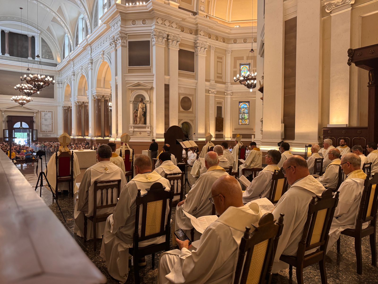 A celebração contou com a presidência de dom Jaime Cardeal Spengler, foi concelebrada pelos bispos auxiliares: dom Darley, dom Bertilo, dom Juarez e dom Odair. Além dos Vigários Episcopais, padres dos diversos Vicariatos que compõe a Arquidiocese, dos diáconos que serão ordenados presbíteros em 2026, além de acólitos e seminaristas. Cerca de 800 pessoas ocuparam a nave central da Catedral. Alguns fieis tiveram a oportunidade do sacramento da confissão.