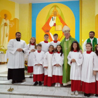 Padre Neimar – Temos o ONDA, CLJ, IVC e os Coroinhas. No Onda um total de 12 crianças, todas na catequese; O CLJ está retomando as atividades depois de oito anos; temos no IVC 70 crianças e adolescentes e um total de 15 Coroinhas. Eles são o presente, pensando no futuro da paróquia.