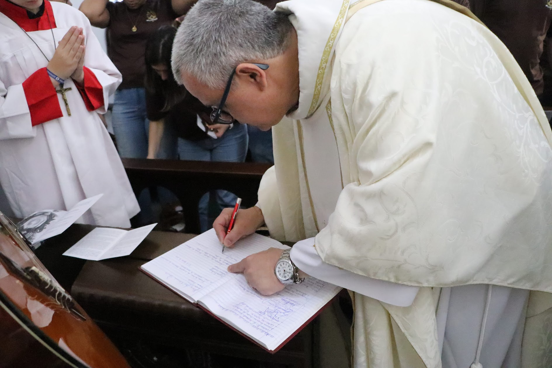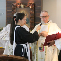 Em seguida, em procissão, todos se dirigiram ao Santuário para o rito da consagração, onde fizeram as Promessas da Aliança de Amor. Após proclamá-las, receberam a medalha da Mãe, Rainha e Vencedora Três Vezes Admirável de Schoenstatt, sinal visível da consagração. Por fim, assinaram o Livro da Aliança no Santuário, registrando este momento tão especial. Entre os consagrados estava o próprio Pe. Alex, que, com seu exemplo, deseja fortalecer ainda mais a Obra de Schoenstatt.