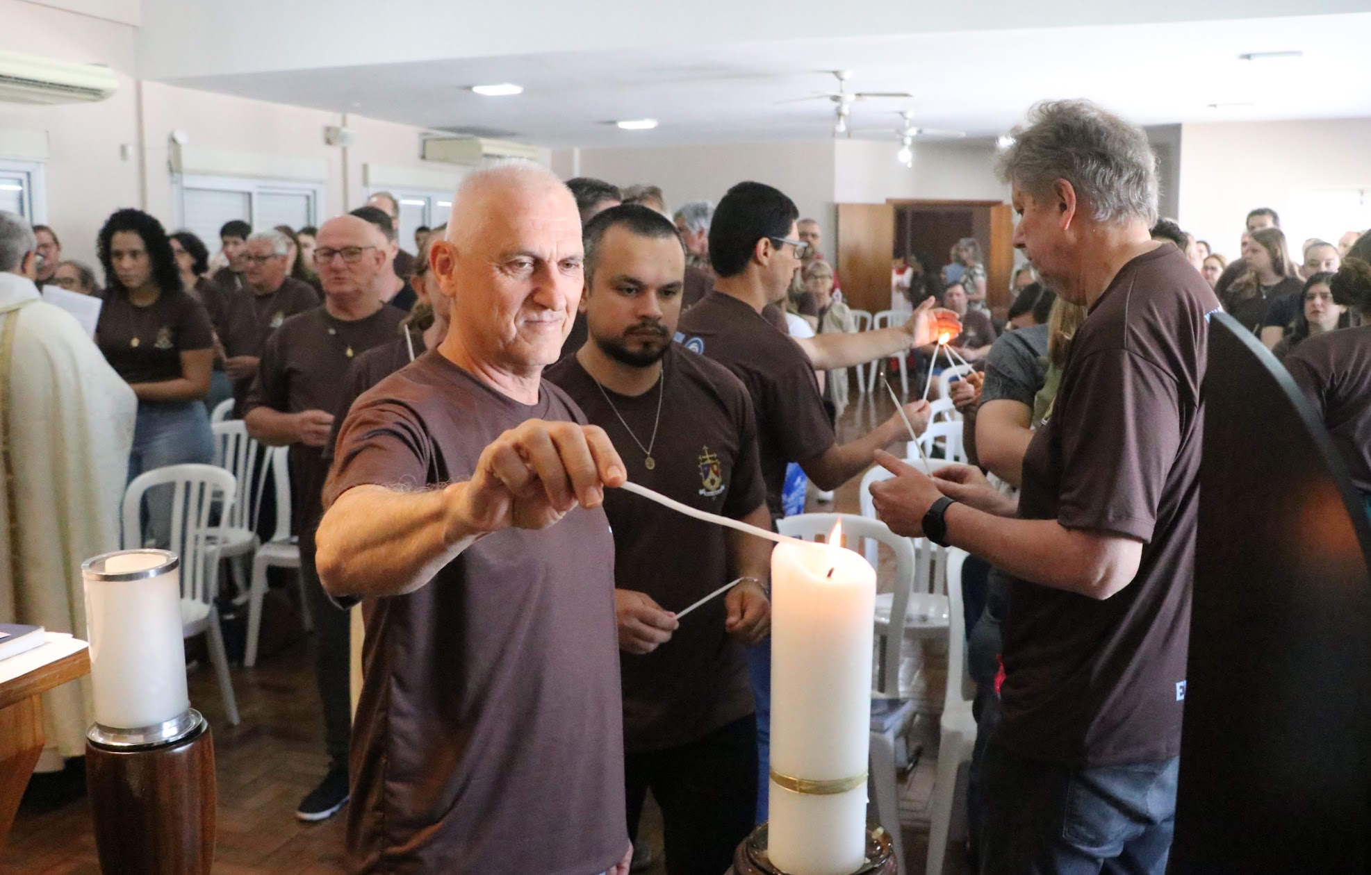 As camisetas e as medalhas — “como o manto de Nossa Senhora” — são sinais da consagração e ajudam a testemunhar o amor de Maria por onde forem.