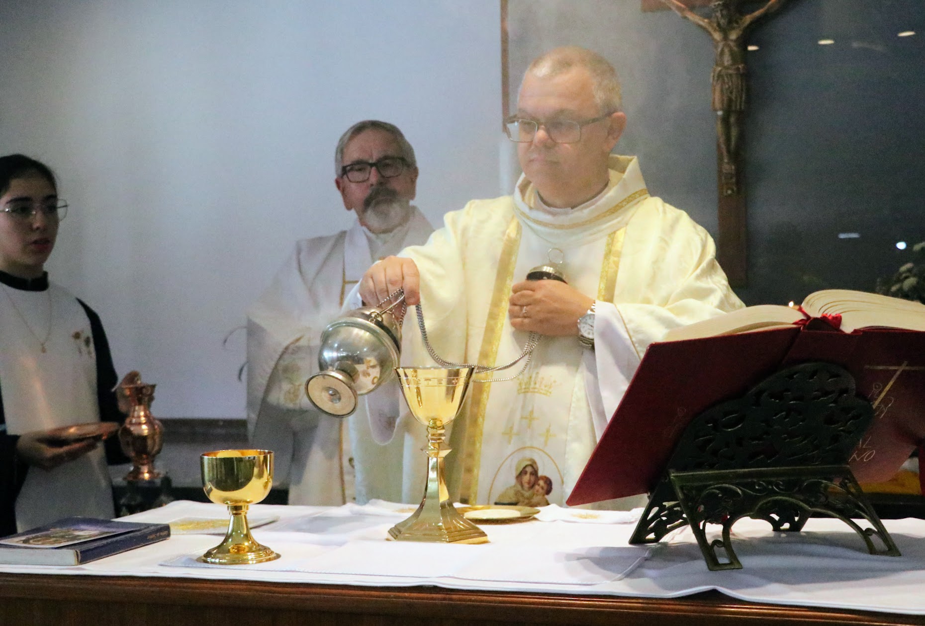 Na manhã deste sábado, 15 de novembro de 2025, o Santuário Tabor Maria Cor Ecclesiae, em Porto Alegre, viveu um momento muito especial. Aconteceu a Santa Missa de consagração de 80 pessoas da Paróquia Sagrado Coração de Jesus, de Estância Velha/RS, pertencente à Diocese de Novo Hamburgo, que selaram a Aliança de Amor com Maria. A celebração foi presidida pelo pároco, Pe. Alex Graminho Boardman, com a assistência do Diácono Estanislau Vogel – o diácono Dominique, como é conhecido e de acólito e coroinhas que pertencem à Juventude Masculina de Schoenstatt.