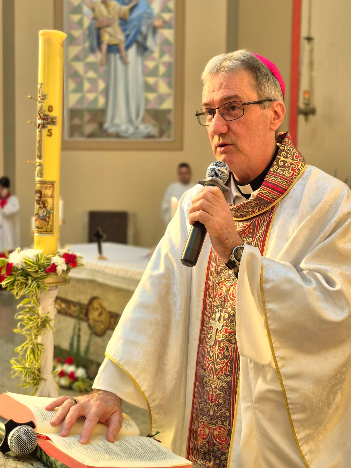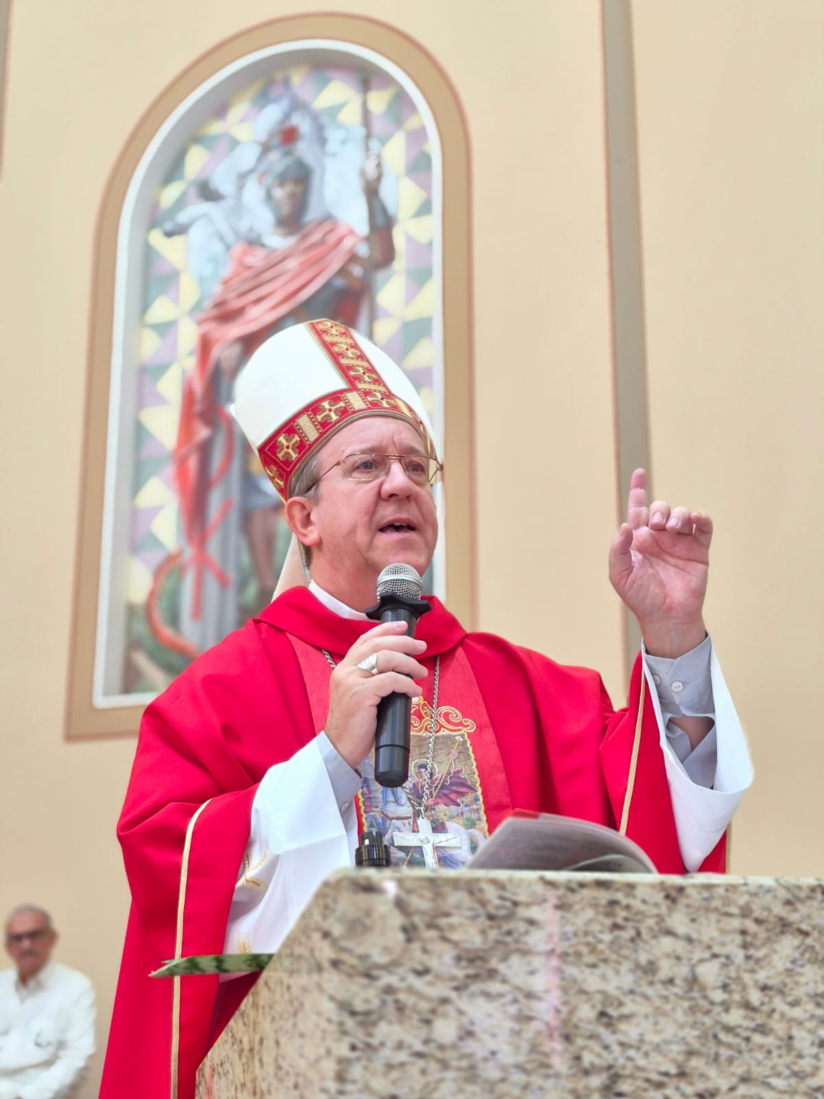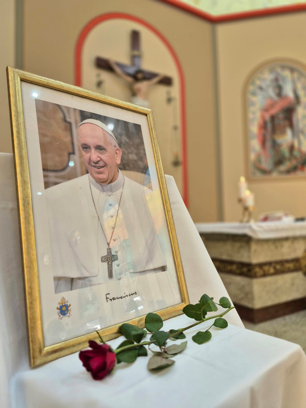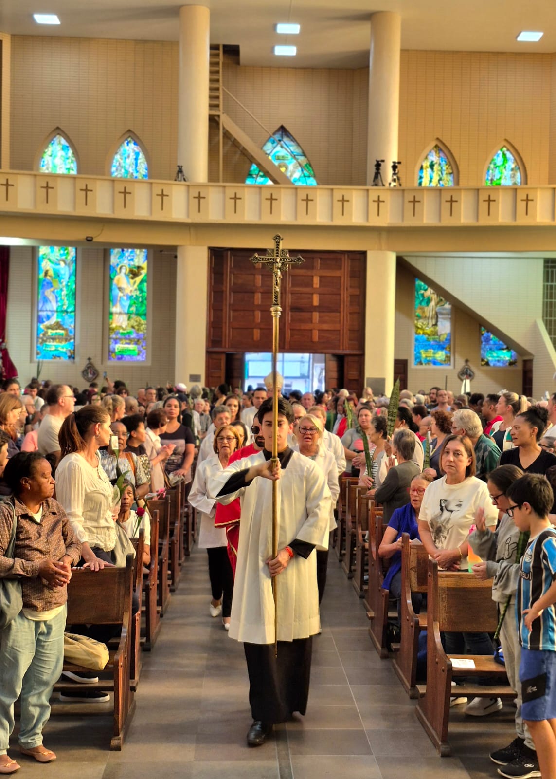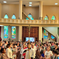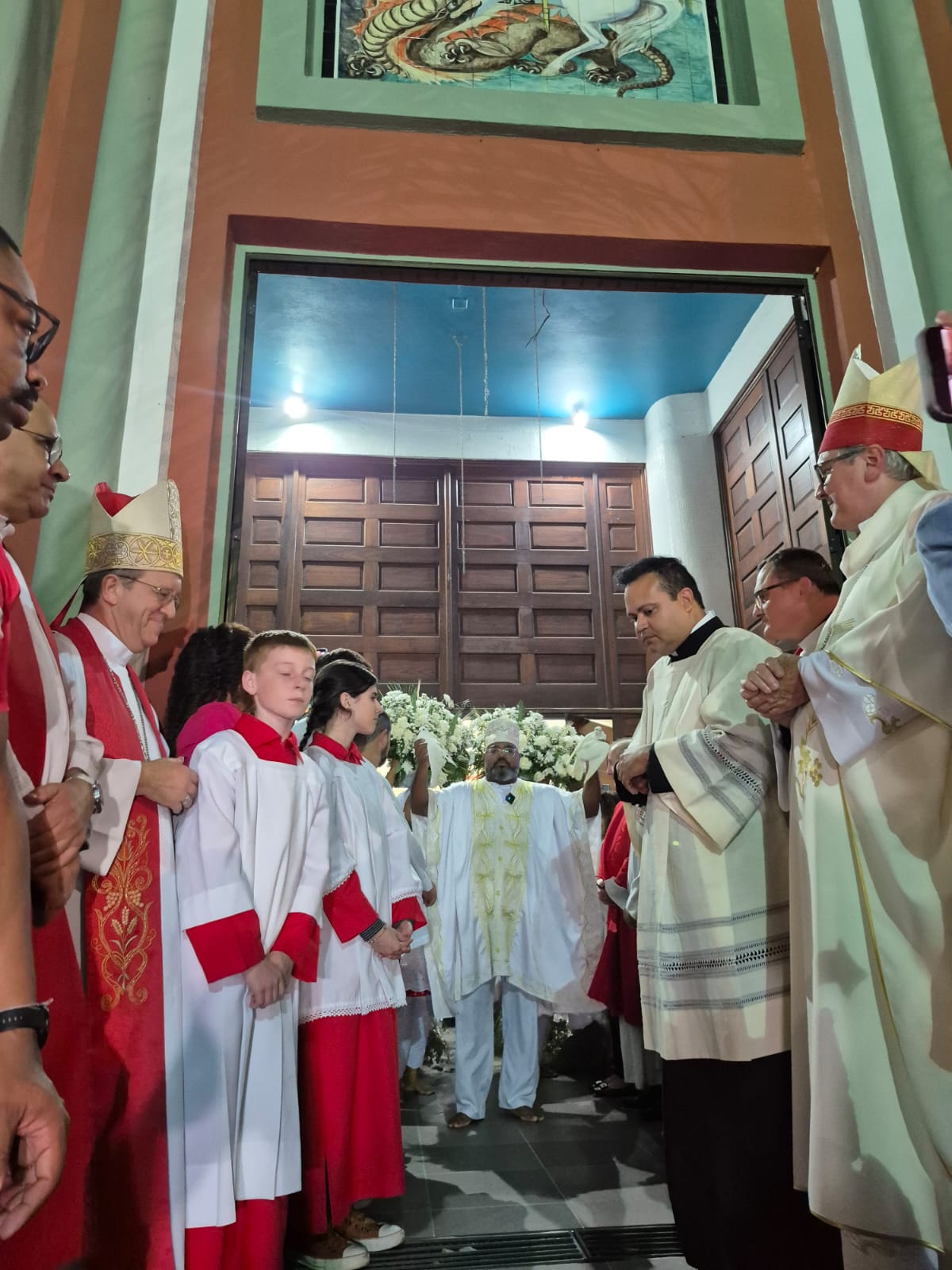 Foram celebradas durante o dia de ontem 13 missas, que iniciaram às 6h30 da manhã e terminaram às 18h30. Todas as missas foram celebradas também em memória do nosso Papa Francisco, falecido na última segunda e que tinha como nome de batismo Jorge, que ganhou destaque com um quadro no presbitério. Entre os celebrantes tivemos a presença de Dom Juarez Destro na missa das 16h30 e o dia de celebrações foi encerrado com a missa das 18h30, presidida por Dom Darley Kummer e concelebrada por Dom Bertilo Morsch, Pe. Sérgio Belmonte, pároco e pelo Pe. Sérgio Endler, vigário. Após a missa ocorreu a lavagem das escadarias da igreja pelos nossos irmãos de religiões africanas para a saída da imagem de São Jorge para a procissão luminosa que percorreu as ruas do bairro Partenon e, segundo estimativas da Polícia Militar, reuniu mais de 100 mil pessoas.