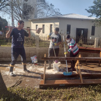 Então, ainda não conseguimos nos reestruturar e estamos tentando recomeçar. E tem sido para nós esse período em Guaíba muito difícil, muito complicado. Foi a cidade que nos acolheu e está sendo, nesse momento, para nós uma cidade dormitório, pois é como se estivéssemos trabalhando. Passamos o dia em Eldorado limpando há alguns dias. Agora já estamos indo para um mês. Vamos para Eldorado do Sul, passamos o dia na limpeza das casas e retornamos à noite para dormir. Então, assim está sendo todos os dias. E a cidade de Guaíba tem sido para nós uma cidade que nos recebeu muito bem. Nós fomos muito acolhidos e recebemos o suporte que precisávamos. Nesse tempo das cheias nós ficamos na paróquia Nossa Senhora do Livramento. E tivemos todo o suporte necessário no período em que ficamos lá. Nós ficamos em 12 pessoas e, sem palavras, tudo o que foi nos fornecido, tudo o que nós vivemos lá, recebemos muito mais do que imaginávamos. E foi um apoio para nossa família muito grande, pois tenho um cunhado que está com câncer. Ele foi atendido por médicos lá. Nós também éramos atendidos por médicos, até por causa das crianças. Meu pai também tem problemas de saúde. Então, o alimento, as vestes, colchão, tudo foi nos dado e nos fornecido da melhor forma possível. Então, nós fomos bem assistidos. Graças a Deus.