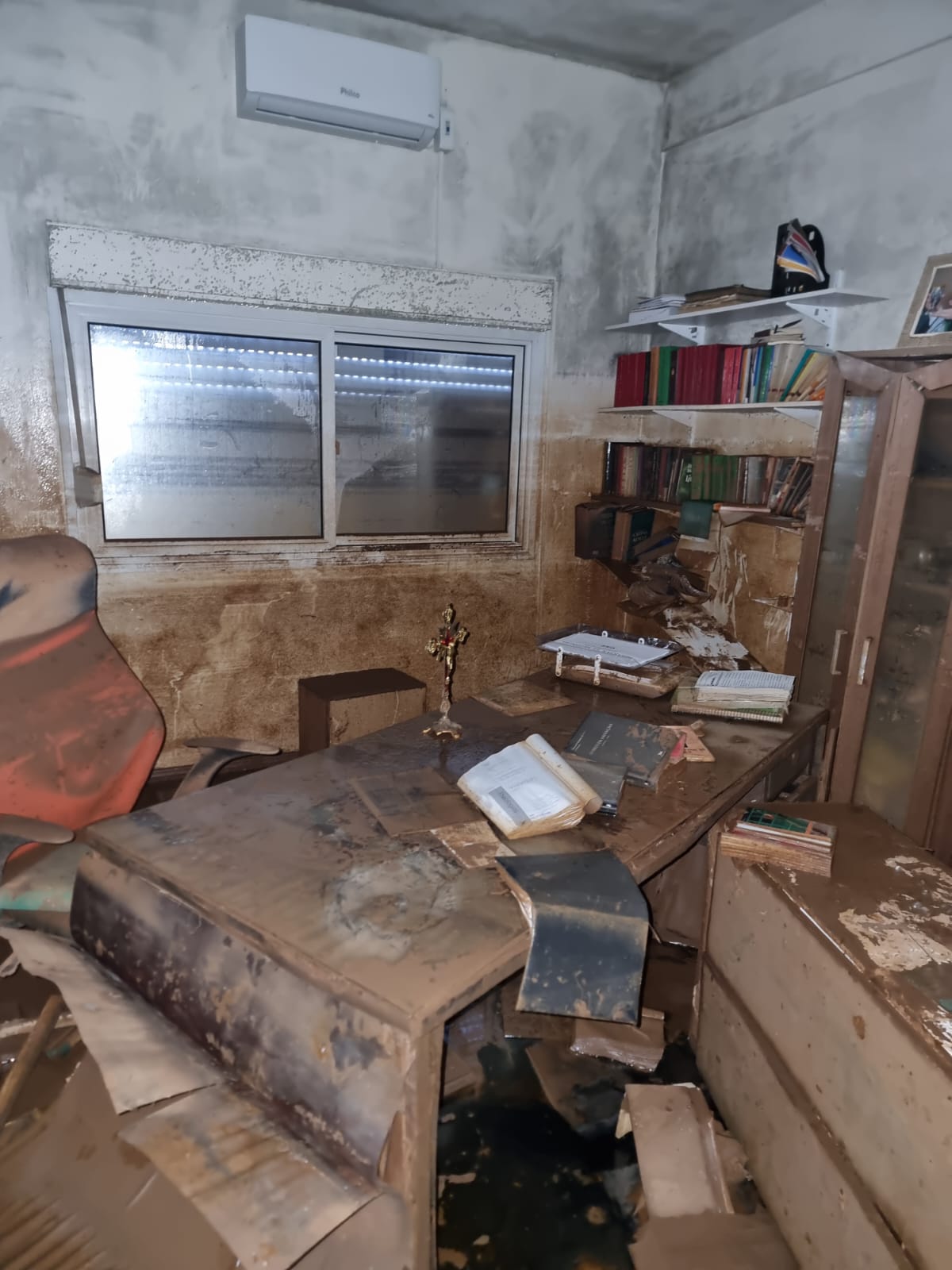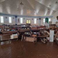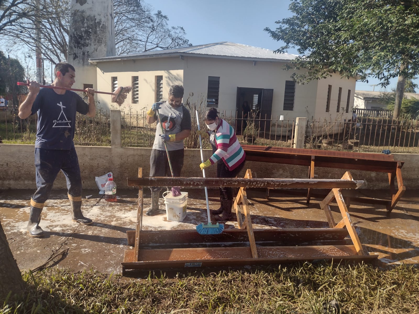 Eu nunca tinha passado pela experiência de uma enchente, nunca na minha vida. Nunca tinha passado por isso. Então foi bastante tenso e triste ver que a igreja estava toda revirada, que a casa paroquial estava o primeiro piso destruído, revirado, bagunçado. Perceber que perdi coisas não só pessoais, mas coisas da paróquia, documentos históricos da paróquia, fotos, recordações, documentos de contabilidade, computadores. Foi bastante triste. Não há muitas palavras para descrever o sentimento.