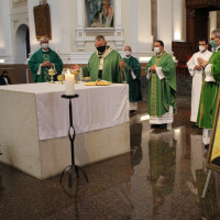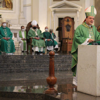 Em sua homilia, Dom Leomar comentou a riqueza do evangelho daquele final de semana, que trouxe a narrativa da multiplicação dos pães, e finalizou destacando aspectos de sua trajetória na Arquidiocese de Porto Alegre, usando como analogia o milagre presente na mesma passagem bíblica. Para o novo arcebispo de Santa Maria, "escutar o Senhor é o fundamento de toda existência de quem crê. Para Deus, no princípio está a Palavra. Para o ser humano, no princípio está a escuta", afirmou.