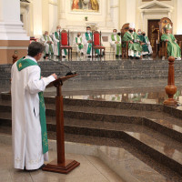 Estimados irmãos no episcopado, Dom Jaime, Dom Donizeti, Dom Adilson e Dom Darley. Caros presbíteros, diáconos consagradas e consagrados. Estimados leigos e leigas, especialmente os queridos e queridas catequistas. Saúdo os membros da Pastoral da Comunicação e da Pastoral da Educação. Especial deferência ao Vicariato de Canoas, aonde mais me dediquei a servir nos últimos anos. Estimados seminaristas e vocacionados. Saúdo os colegas da PUCRS e o rabino Ghershon, cuja presença traduz nosso caminho comum nos passos da fé abraâmica. Sou muito grato pela presença de todos e todas. Recebam igualmente meu especial agradecimento as instâncias da Arquidiocese que propuseram e organizaram esta celebração, especialmente a paróquia da Catedral.