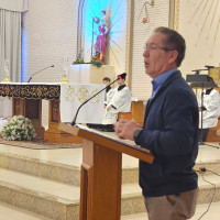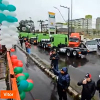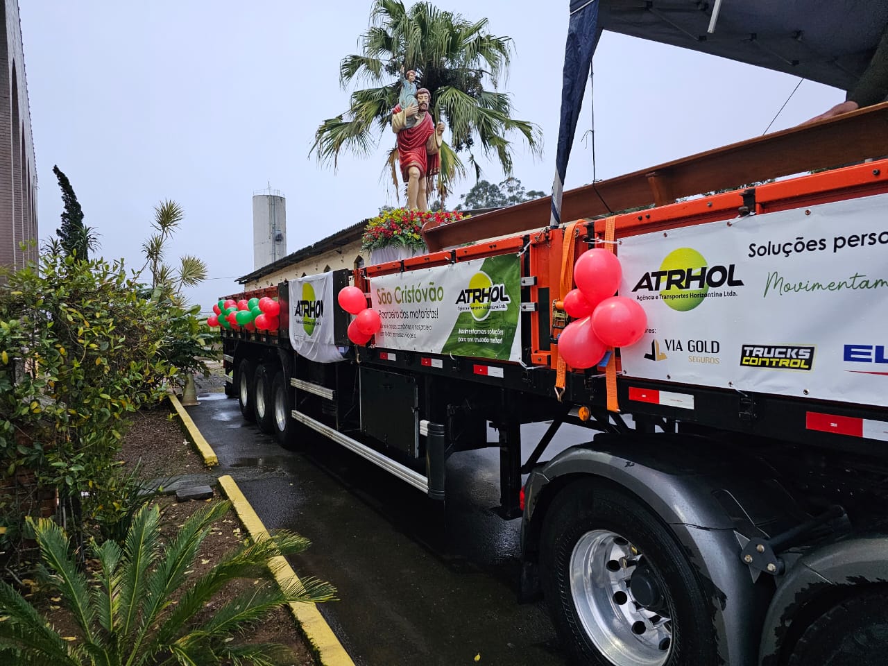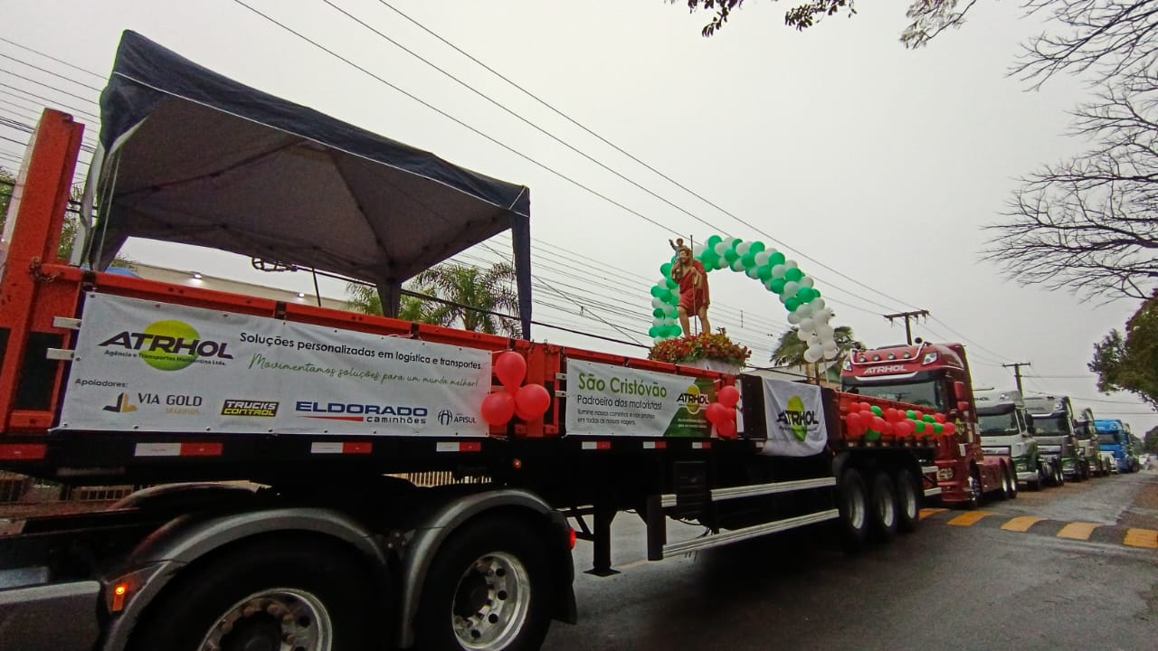 A procissão de caminhões, um dos momentos mais aguardados da festa, emocionou quem acompanhava. “Foi a primeira vez que fui no caminhão e me surpreendi com a quantidade de motoristas e como São Cristóvão tem um significado muito forte”, relatou Vitor Flores, agente da Pascom do Santuário. “Mesmo com a chuva, deu para registrar as imagens”.