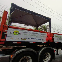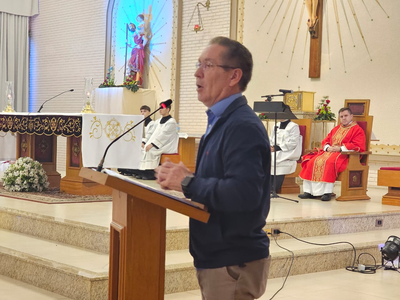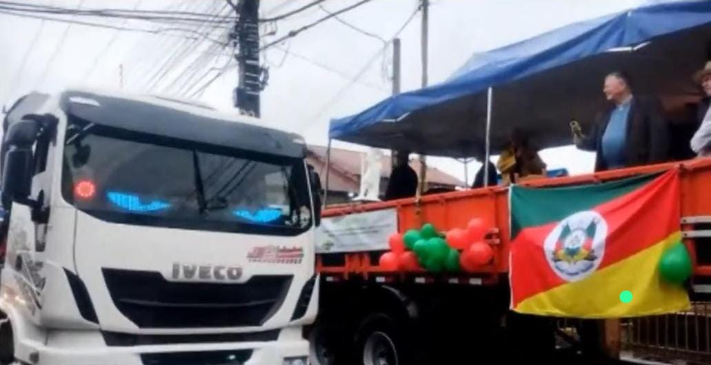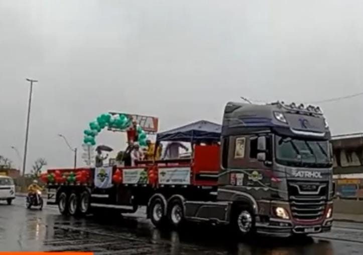 A frente da igreja ficou completamente lotada, reunindo fiéis, caminhoneiros e famílias que enfrentaram a instabilidade do tempo para participar das celebrações e receber a tradicional bênção dos veículos.