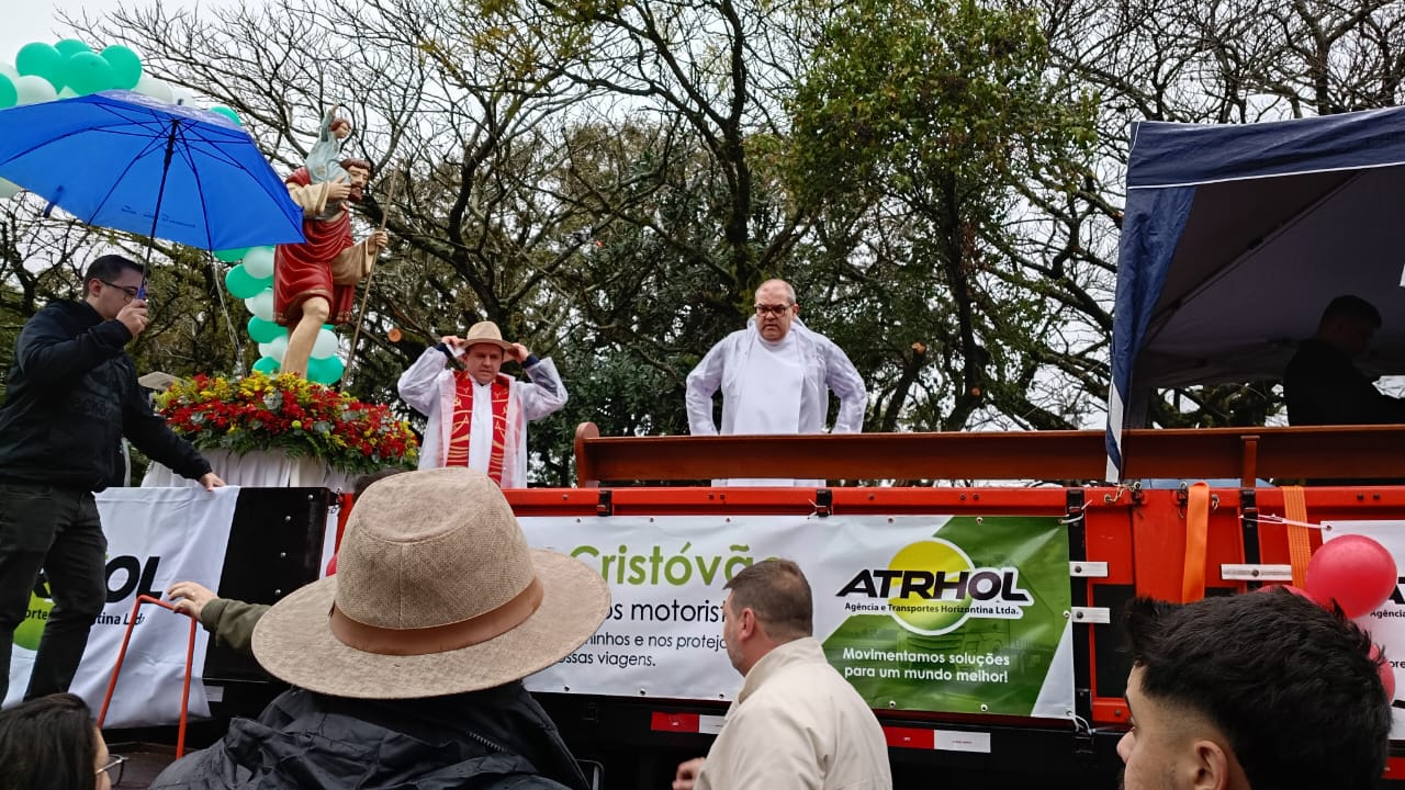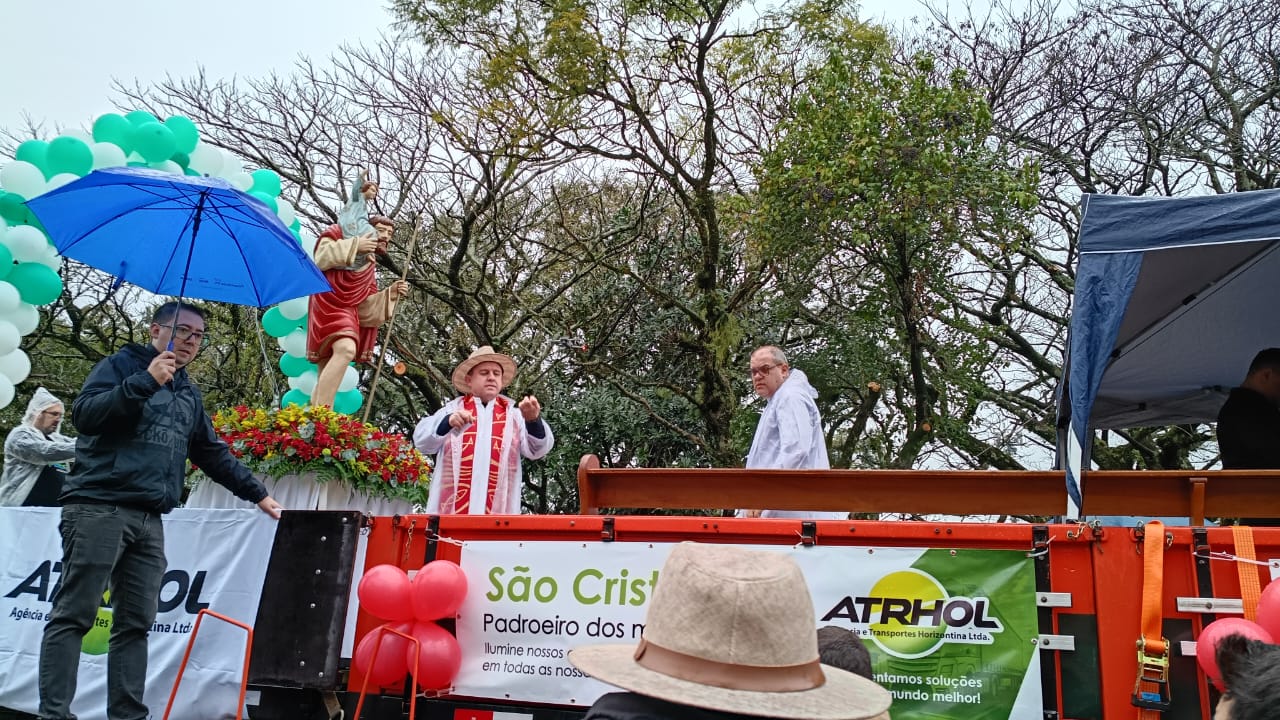 Apesar da forte chuva e das previsões de mau tempo, cerca de 5 mil pessoas participaram, no domingo (27), das festividades em honra a São Cristóvão, padroeiro dos motoristas, no Santuário São Cristóvão, em Canoas (RS).
