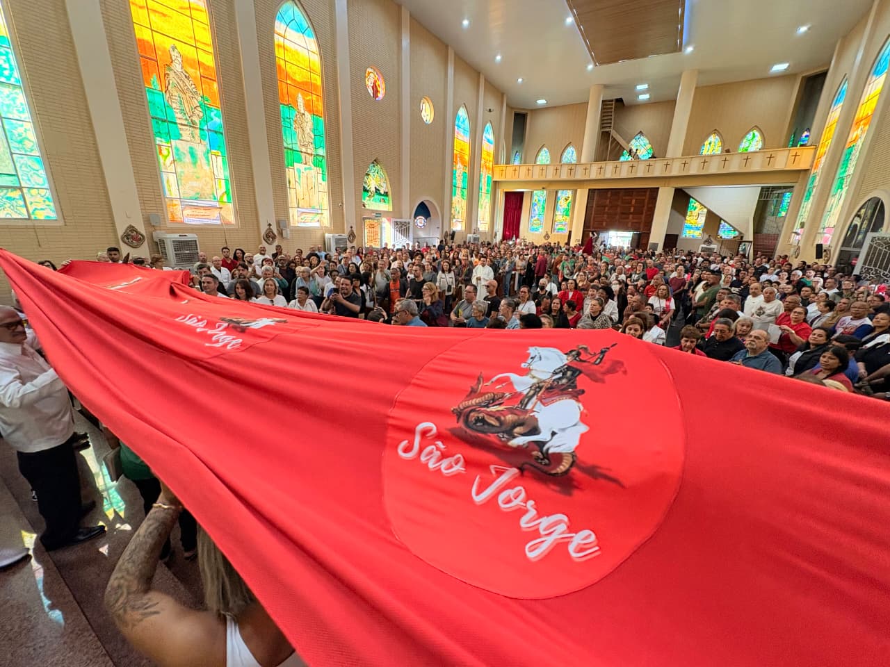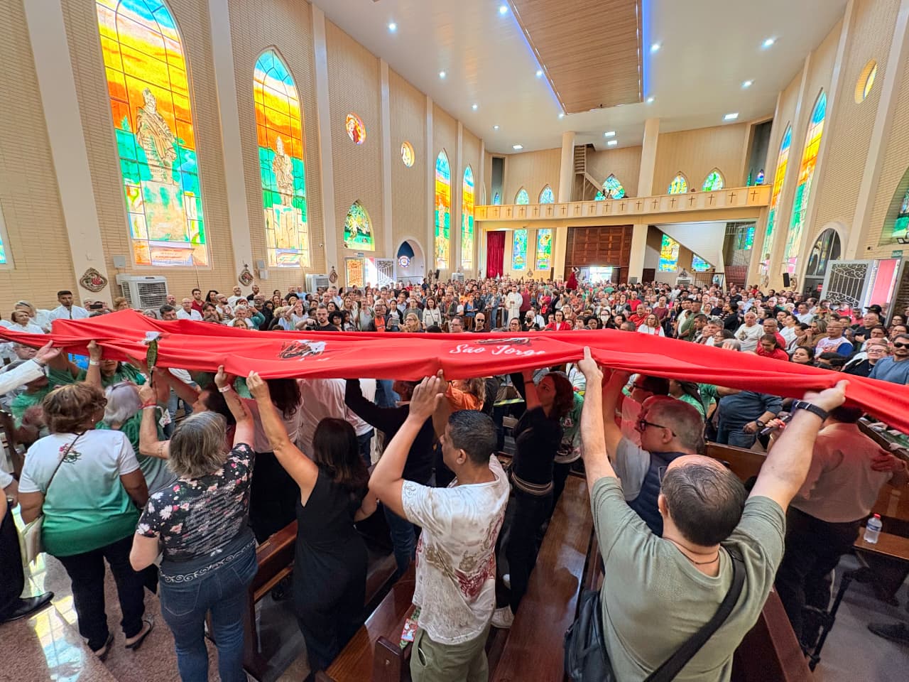 A fé mobilizou milhares de devotos na zona leste de Porto Alegre durante a Festa de São Jorge, realizada entre os dias 23 e 26 de abril, na paróquia dedicada ao padroeiro. A programação reuniu grande número de participantes e registrou intensa circulação de pessoas, especialmente nos horários de missa e durante as procissões.