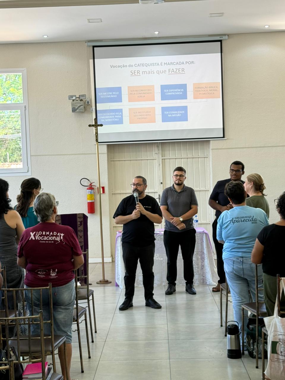 Durante o encontro, também houve espaço para diálogo, partilha e esclarecimento de dúvidas, favorecendo a integração entre os participantes e o aprofundamento da missão de evangelizar.