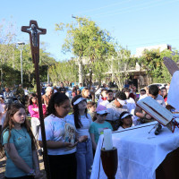 Com fé, Pe. Bruno concluiu sua reflexão dizendo: “Queremos pedir hoje, na Santa Missa da Romaria Infantojuvenil da Mãe Peregrina de Schoenstatt, a graça de sermos, como diz São Paulo, templos vivos, santuários do Altíssimo, morada de Deus. Maria é o caminho mais rápido e mais seguro para chegar a Jesus — e Ela fará esse grande milagre acontecer em nossas vidas.”