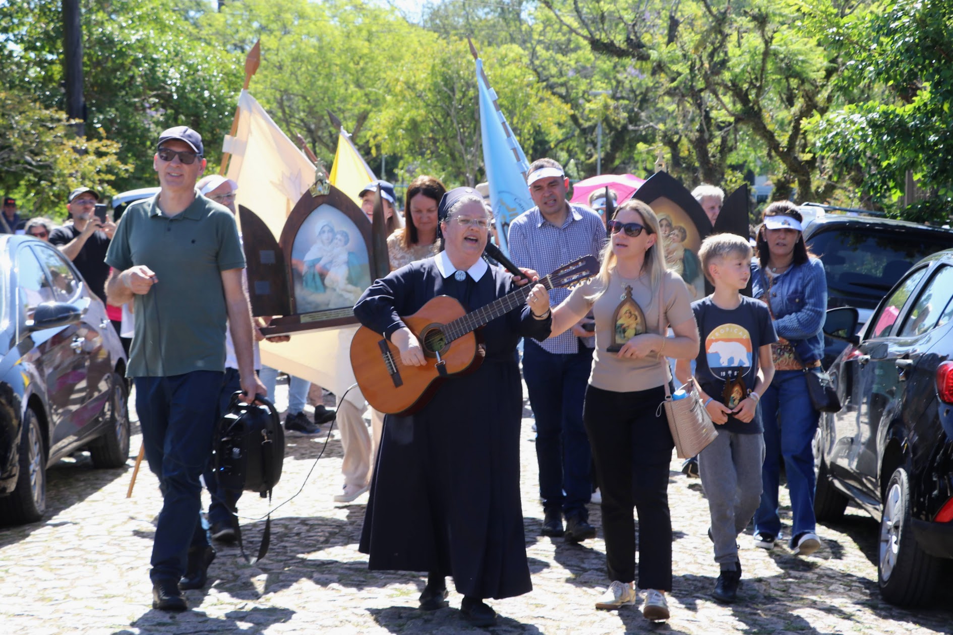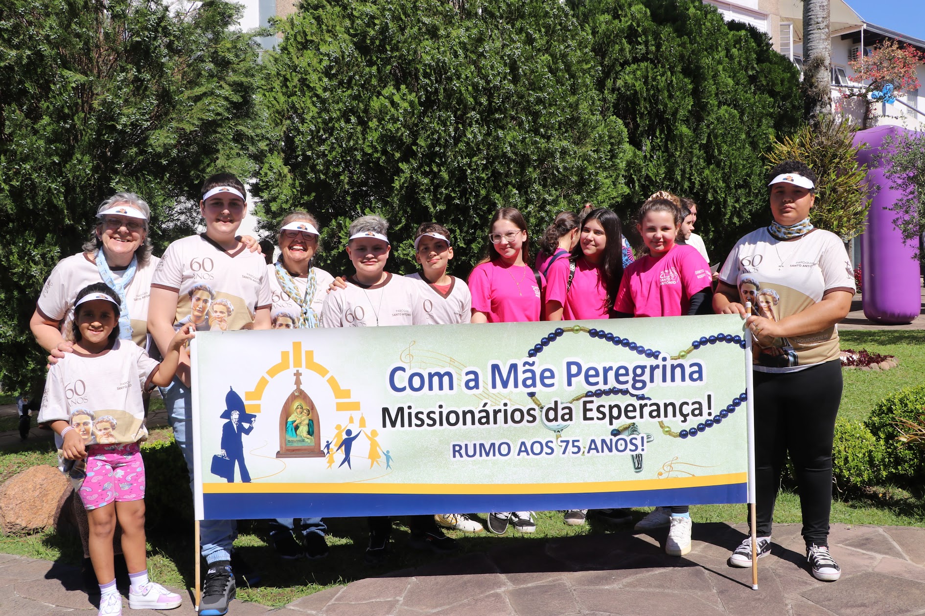 Com amor e entusiasmo, os peregrinos levaram as duas Imagens da Mãe Peregrina Auxiliar, que representam as comunidades da Arquidiocese de Porto Alegre e da Diocese de Novo Hamburgo, além das Imagens Peregrinas Infantojuvenis.