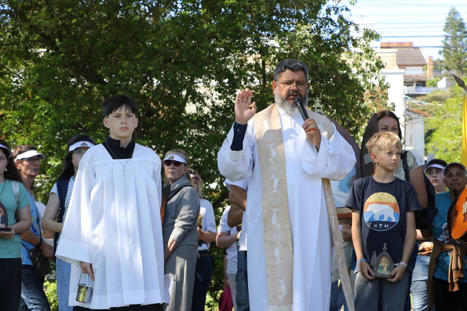 Vindos de diversas paróquias da Arquidiocese de Porto Alegre e da Diocese de Novo Hamburgo, os fiéis transformaram as ruas em um verdadeiro caminho de oração e louvor. A procissão saiu do Santuário, na Rua Carajá, e percorreu a Rua Chavantes, a Praça João Bergmann e as ruas Pereira Passos e Guaiacuru, retornando ao ponto de partida — o Santuário Tabor Maria Coração da Igreja.