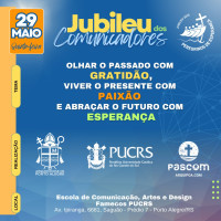No próximo dia 29 de maio, comunicadores, pasconeiros e entusiastas da comunicação de todas as comunidades da Arquidiocese de Porto Alegre se reúnem para celebrar o Jubileu dos Comunicadores, em um encontro marcado por espiritualidade, formação e confraternização. O evento terá como local a Escola de Comunicação, Artes e Design – Famecos, da PUCRS, com início às 18h30, e promete ser um momento especial para refletir sobre a missão evangelizadora no mundo da comunicação.