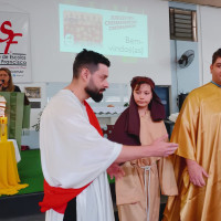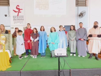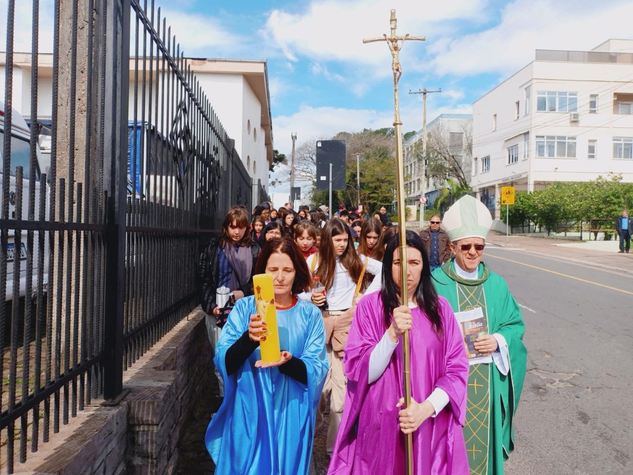 A programação iniciou com a acolhida e uma animada recepção conduzida pelos seminaristas. Em seguida, um grupo de jovens de Canoas apresentou a mística inicial com a encenação do Evangelho dos discípulos de Emaús (Lc 24, 13-35).
