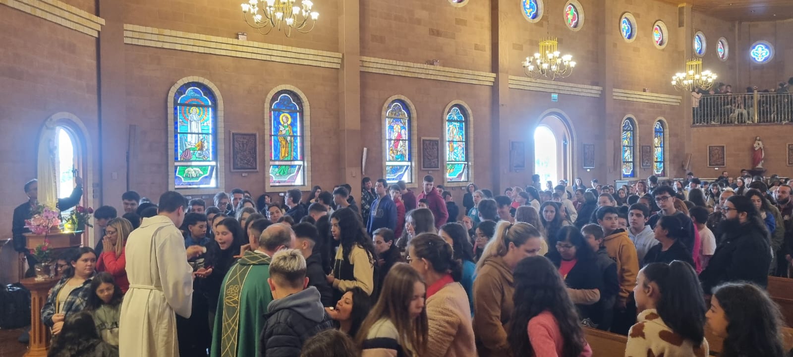 A tarde culminou com uma pequena peregrinação até o Santuário, onde foi celebrada a missa. Durante a eucaristia, marcada pela renovação das promessas batismais, os padres Rafael Fernandes, Bruno, José Messa e Paulo César atenderam confissões.