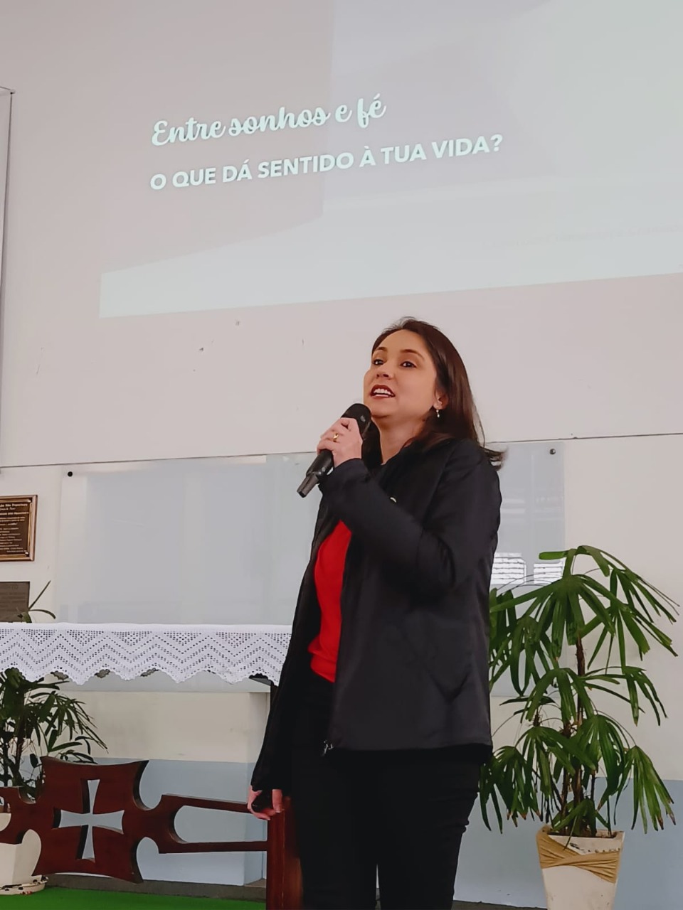 O momento formativo ficou por conta da doutoranda em Jornalismo e Comunicação pela PUCRS, Juliana Vencato, que trabalhou o tema “Entre sonhos e fé: o que dá sentido à tua vida?” de forma interativa. Logo após, os jovens ouviram testemunhos de diferentes vocações: o casal Juliana Vencato e Victor Lopes Linder, a irmã Lourna Bony (ICM), o seminarista Mateus e o padre Bruno (SAV).