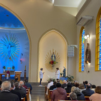 A celebração contou com a presença do pároco, Pe. Cesar Leandro Padilha, do Pe. Francisco Grasselli (Pe. Chico) e do diácono Flávio, que concelebraram a Eucaristia junto ao Pe. Juliano.