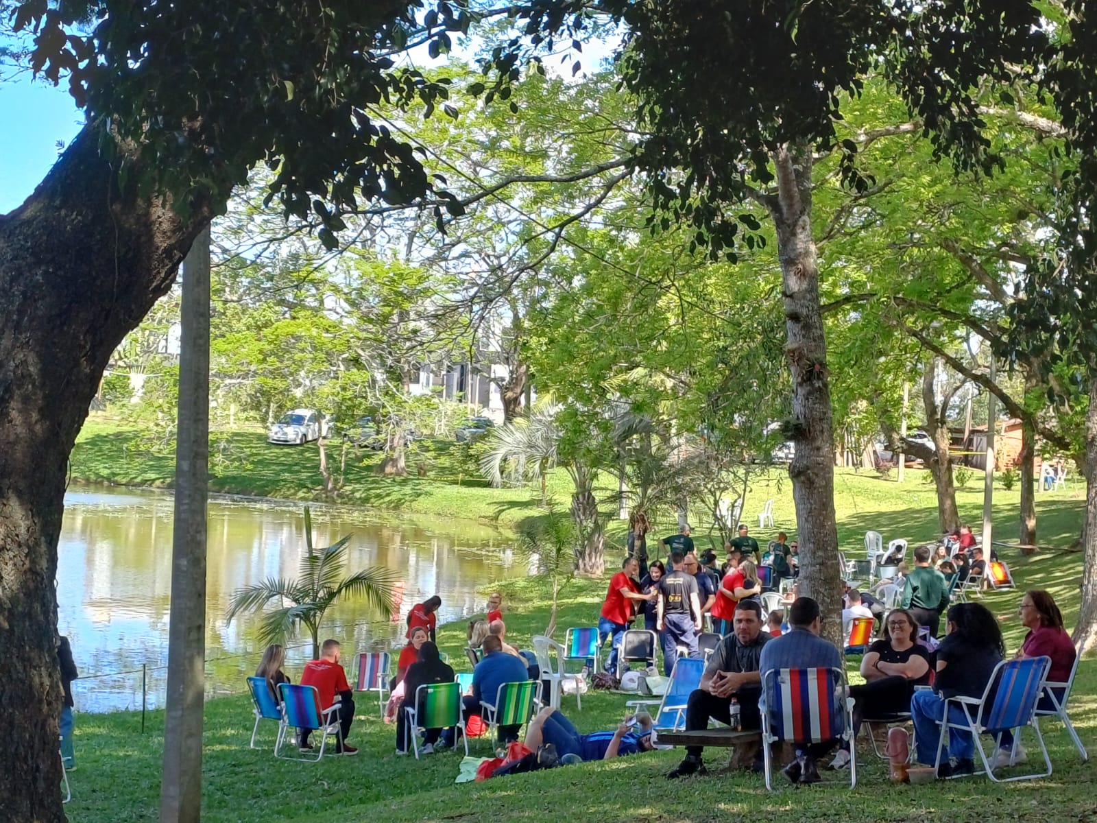 O almoço partilhado, com cada grupo levando seus próprios alimentos, reforçou os laços de fraternidade. Refrigerantes e sorvetes estavam à venda, completando o momento com leveza e sabor.