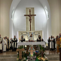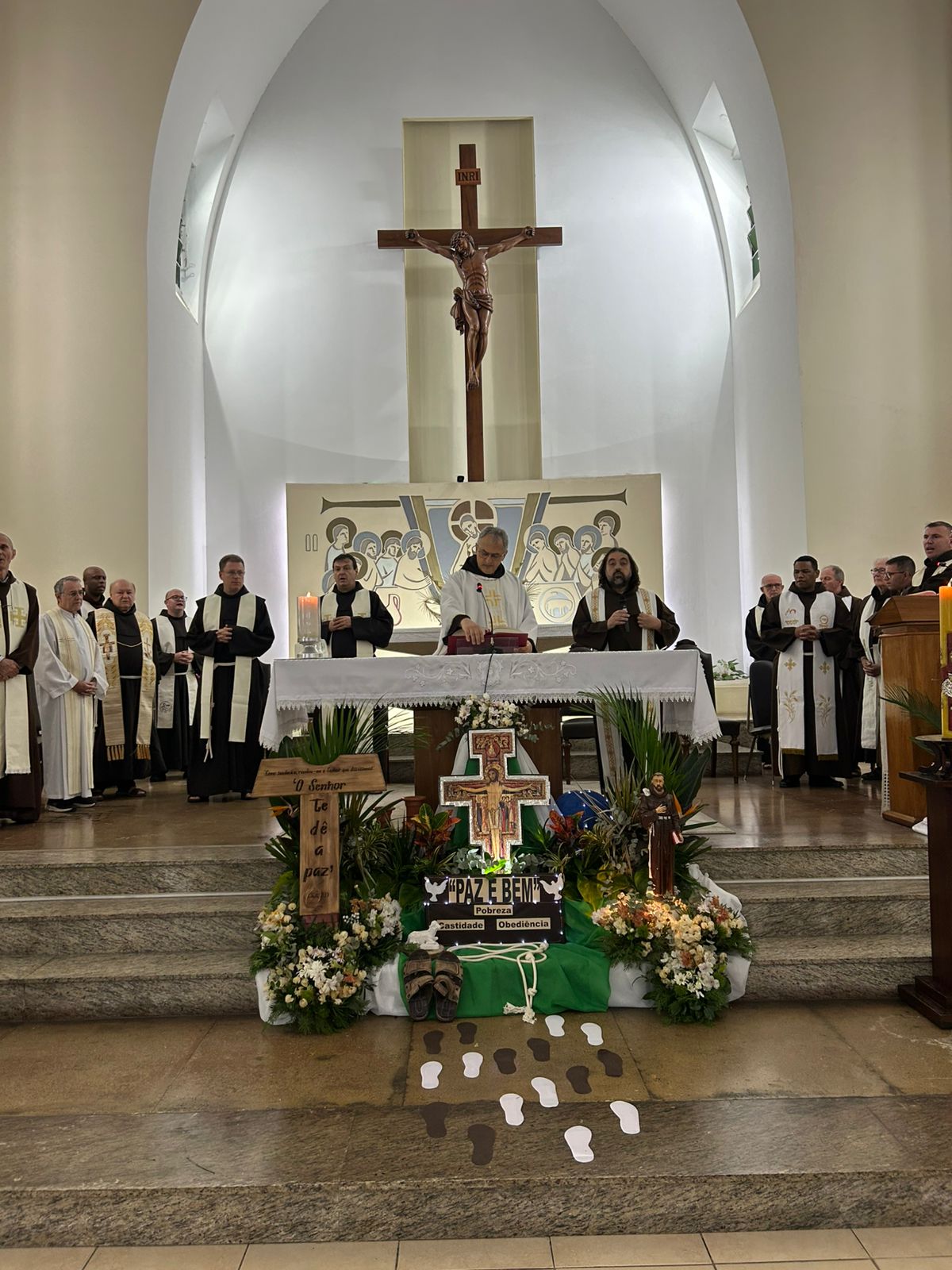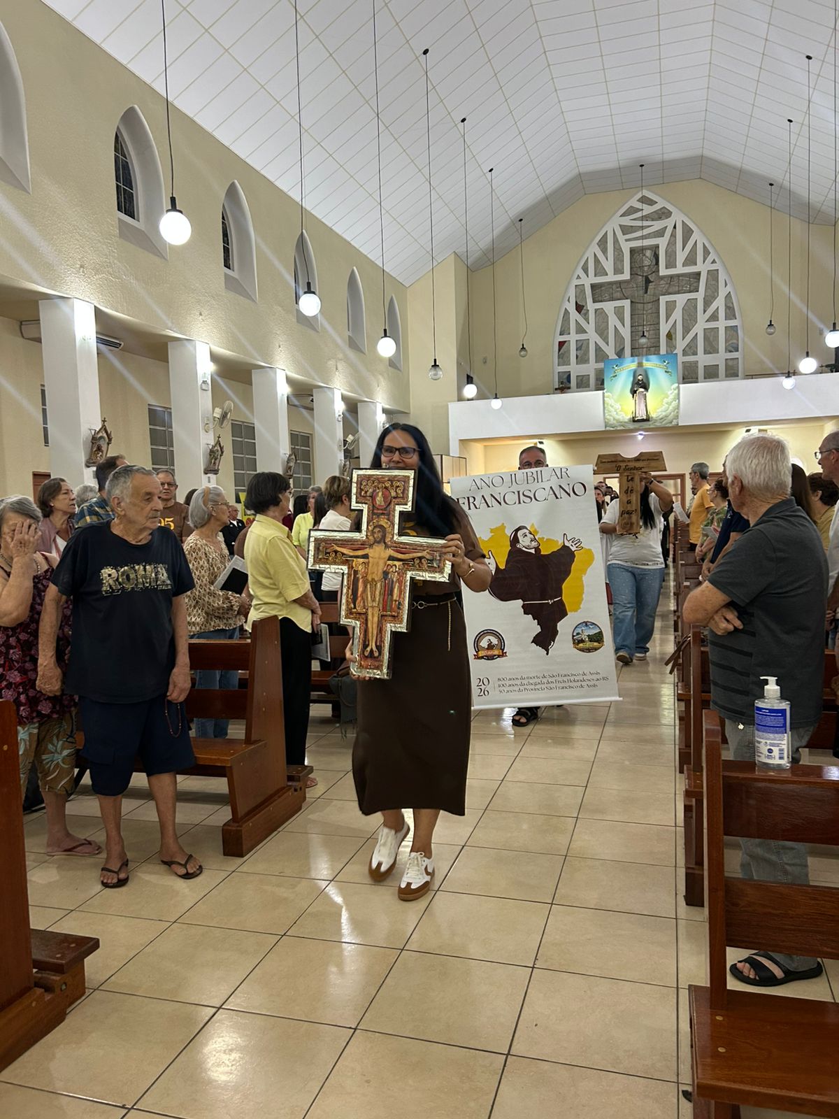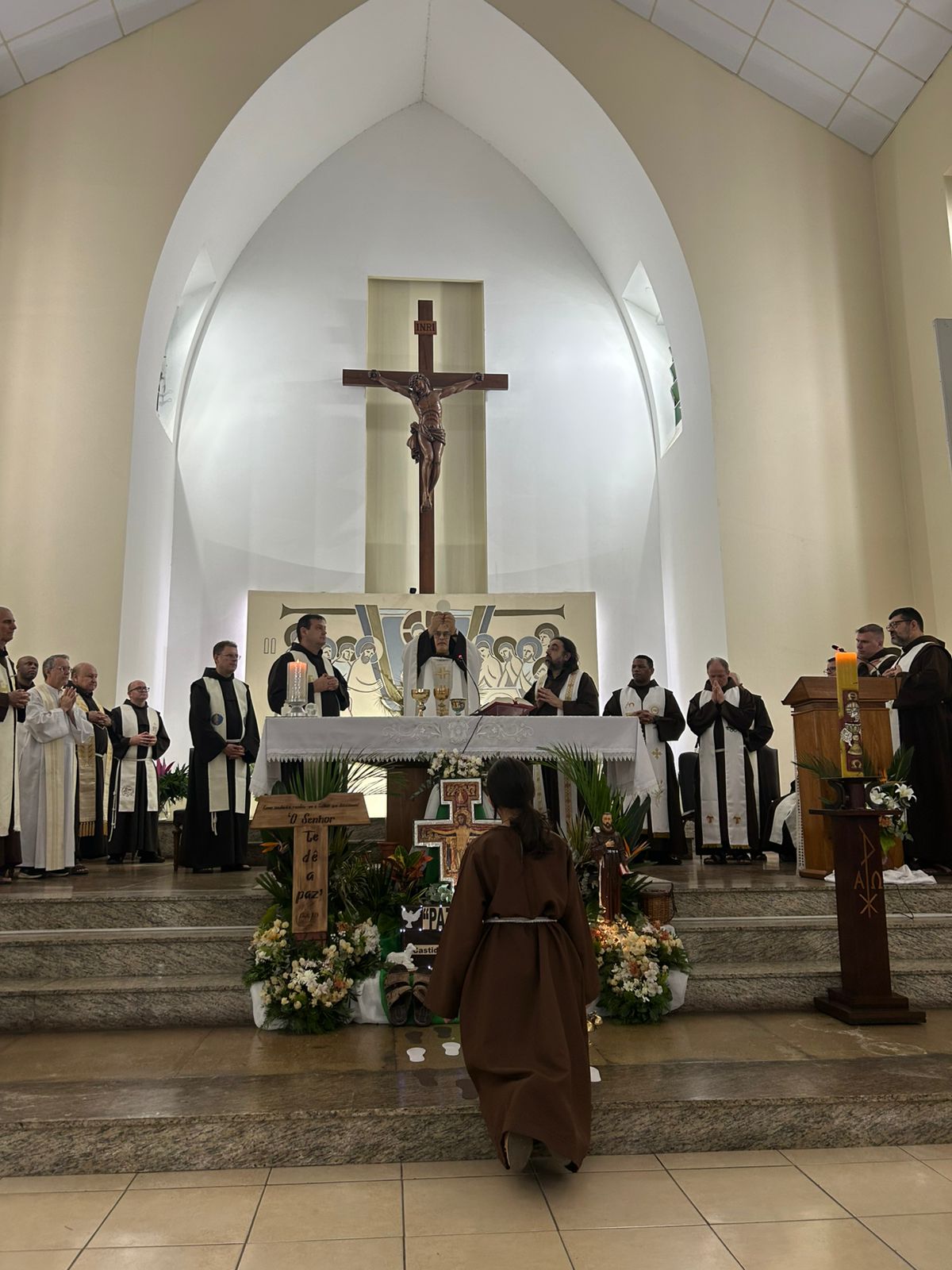 Uma missa solene foi presidida por Frei Máximo e concelebrada por 17 frades, na Paróquia São Francisco de Assis de Porto Alegre. Em um rito carregado de simbolismo, o Ministro Geral abençoou um grande Tau, que é o sinal da cruz franciscana. Este Tau dá início a uma peregrinação que percorrerá todas as frentes de trabalho dos frades no Rio Grande do Sul ao longo de 2026, unindo as comunidades em torno do centenário.