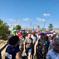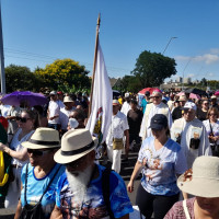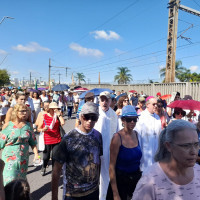Ao longo do trajeto, muitas demonstrações de fé e amor dos católicos por Maria. Famílias inteiras caminhando com crianças pequenas, alguns devotos fazendo o trajeto descalços mesmo com a alta temperatura, além da manifestação de fé com a oração do Santo Terço e cantos ao longo da procissão.