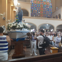 A chegada no Santuário Nossa Senhora dos Navegantes ocorreu pouco depois das 10h. Uma multidão já lotava o largo aguardando a chegada de Maria a sua casa. Às 10h30 foi celebrada a solene missa presidida pelo bispo auxiliar da Arquidiocese de Porto Alegre Dom Darley José Kummer. A celebração contou com a participação de autoridades como o prefeito de Porto Alegre, Sebastião Melo, e do ex-prefeito e ex-governador do Rio Grande do Sul, Olívio Dutra, além de vereadores e secretários municipais.