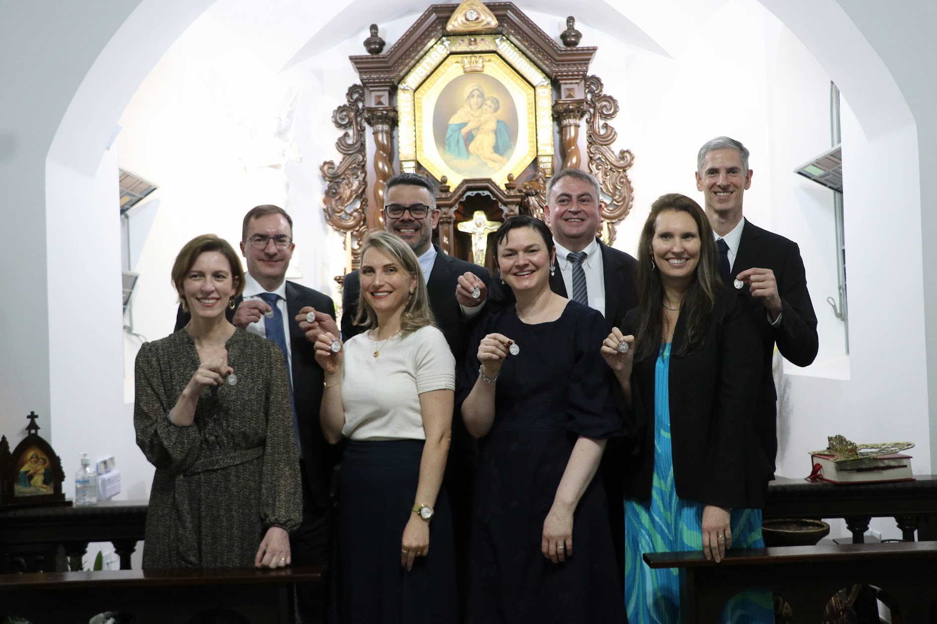 Os casais Elisa Dehnhardt Basso e Daniel Basso; Jacqueline Lahm Steffen Lima e Darcio Franco Lima Junior; Luis Antonio de Carvalho Moura e Rochele Cassanta Rossi; e Rafael Sgarioni Vargas e Ana Paula Gritti aprofundaram sua entrega na Aliança de Amor com Maria, selando o seu “sim” como Membros da União, após uma caminhada de formação que se estendeu ao longo de 10 anos.