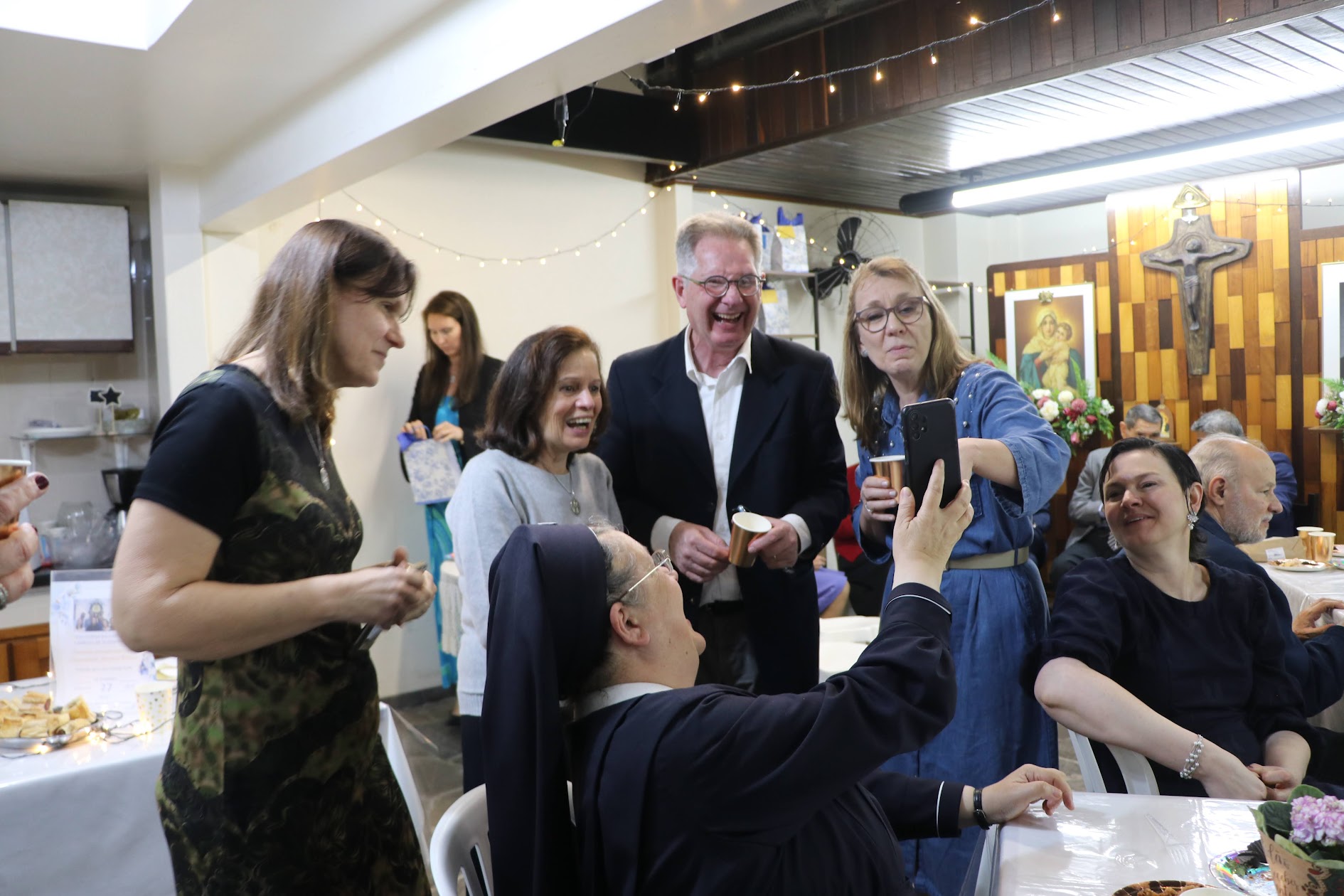 Após a cerimônia, os casais e suas famílias participaram de uma confraternização na sala Pe. Kentenich, anexo ao Santuário.