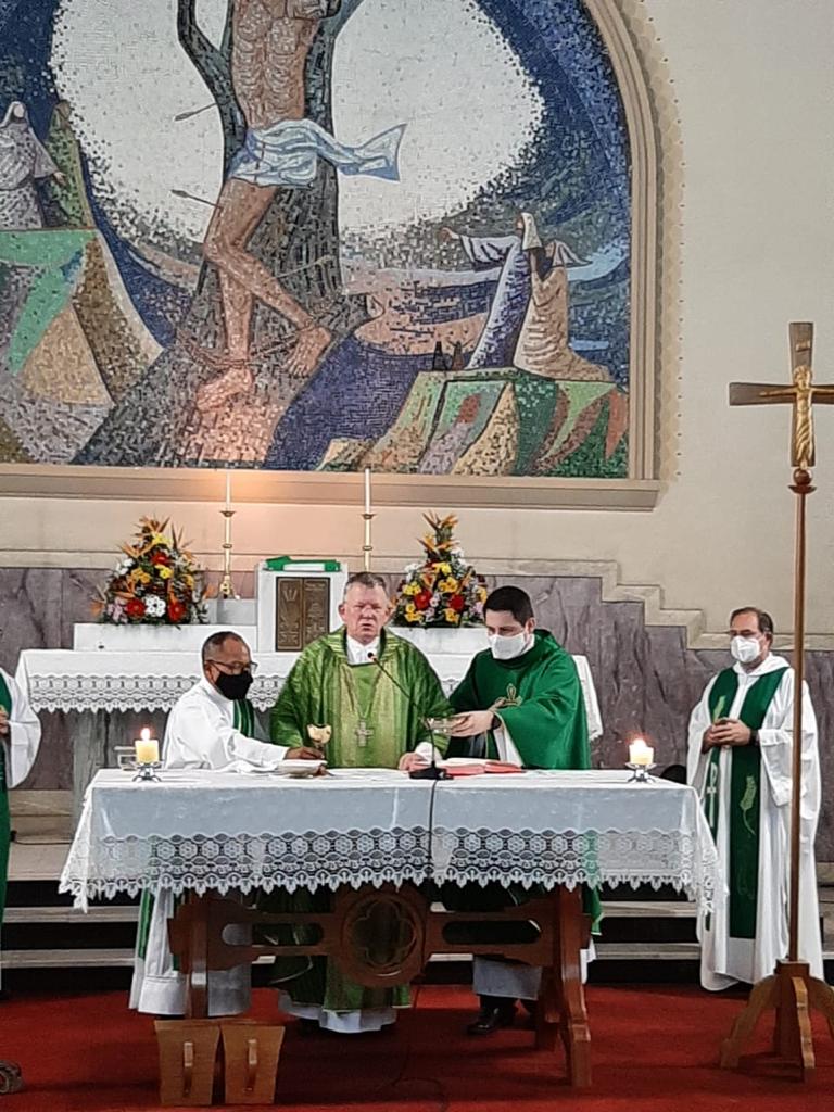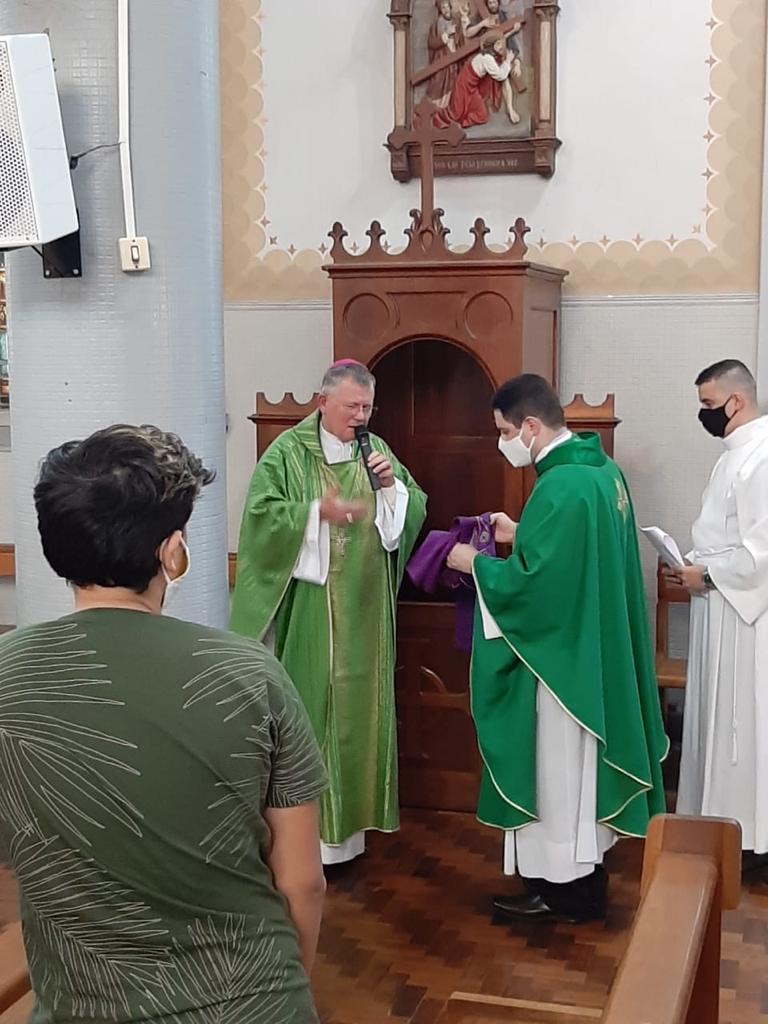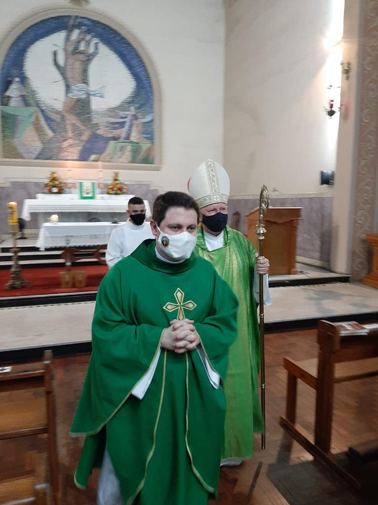 O Padre Fabiano Schwanck Colares tomou posse na terça-feira (15) como pároco Da paróquia São Sebastião Mártir, localizada no bairro Petrópolis, em Porto Alegre. A Santa Missa foi presidida pelo arcebispo Dom Jaime Spengler e teve transmissão pela rádio Aliança. Concelebraram os padres Adilson Kuntlezer, Laênio Custódio, Daniel Silva, Gustavo Hass, Edivelton Flores, Léo Hastenteufel, Luís Carlos Coelho, Gelson Ferreira, Davi Dietrich e o Frei Orestes Serra.