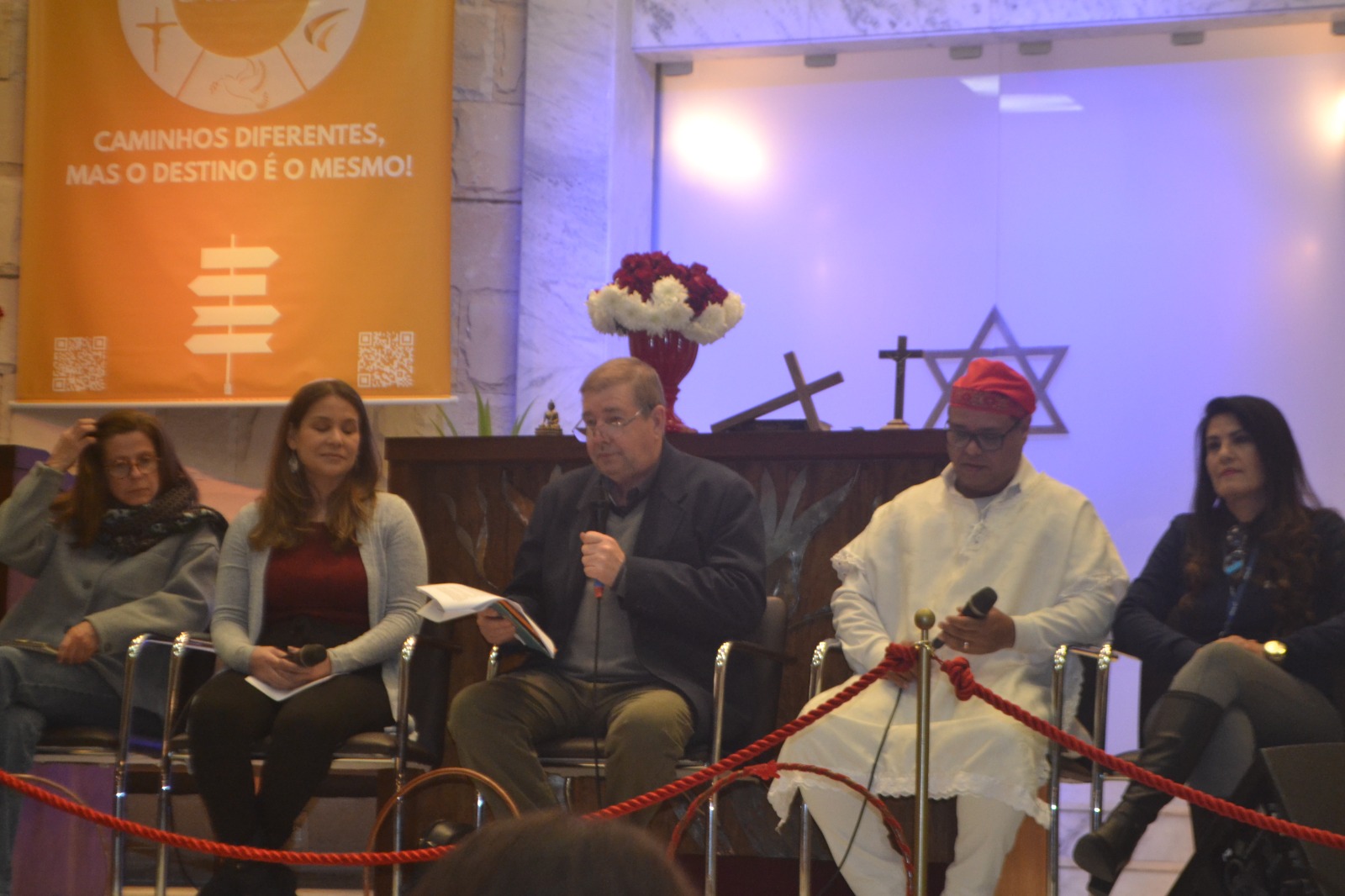 Entre os convidados, o padre Blasio Jacobi participou representando a Igreja Católica e falou sobre o posicionamento frente à intolerância religiosa e às diversas formas de discriminação, reforçando o compromisso com o respeito mútuo e a convivência pacífica entre diferentes crenças.