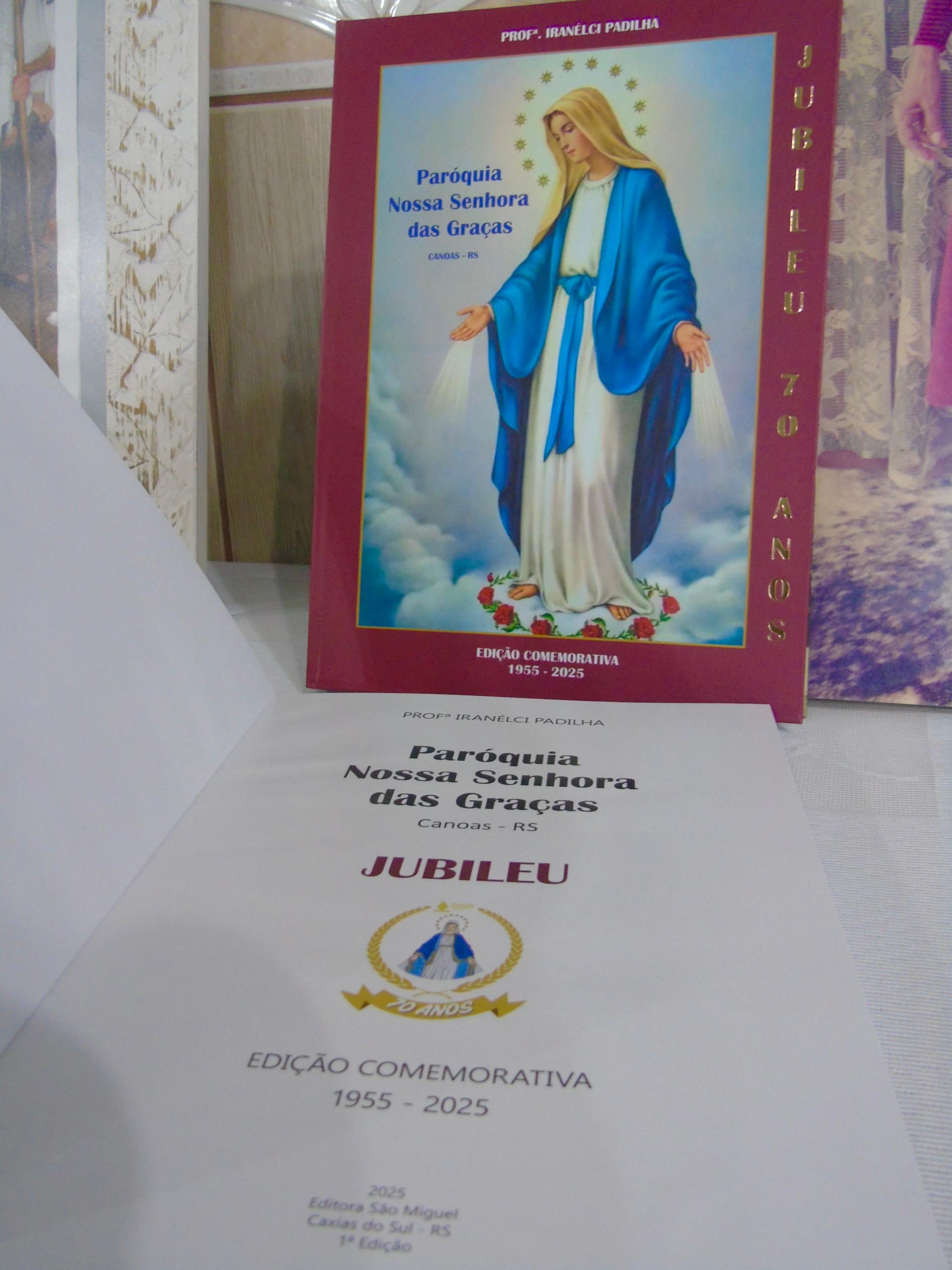 Em clima de gratidão e memória viva, a Paróquia Nossa Senhora das Graças, em Canoas (RS), lançou na noite de 18 de julho o livro “Paróquia Nossa Senhora das Graças – 70 anos”, escrito por Iranélci Padilha, mãe do pároco, Pe. César Leandro Padilha. A obra faz parte da programação especial do Ano Jubilar da Esperança, que celebra as sete décadas de história, fé e missão da paróquia, uma das igrejas jubilares da Arquidiocese de Porto Alegre.
