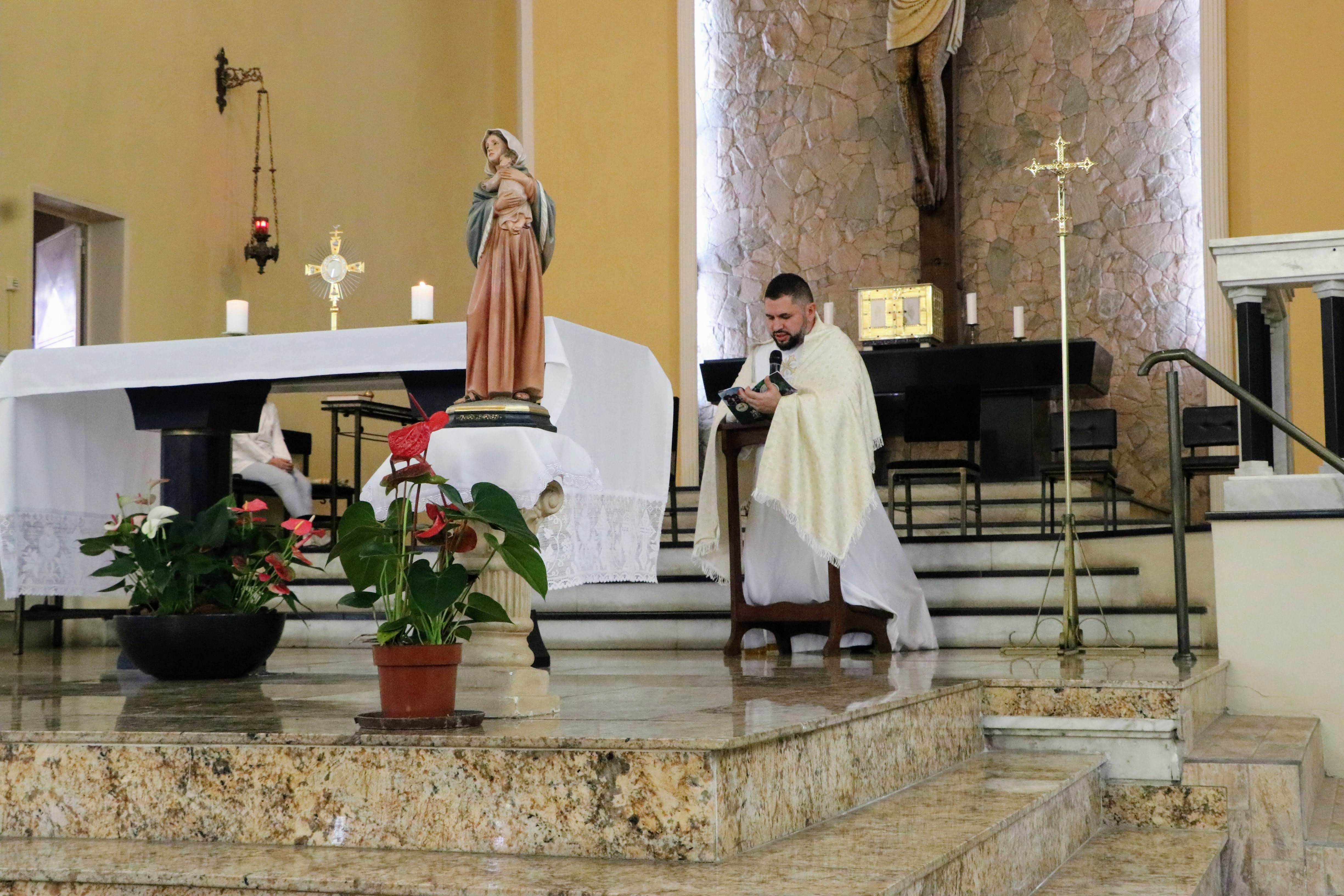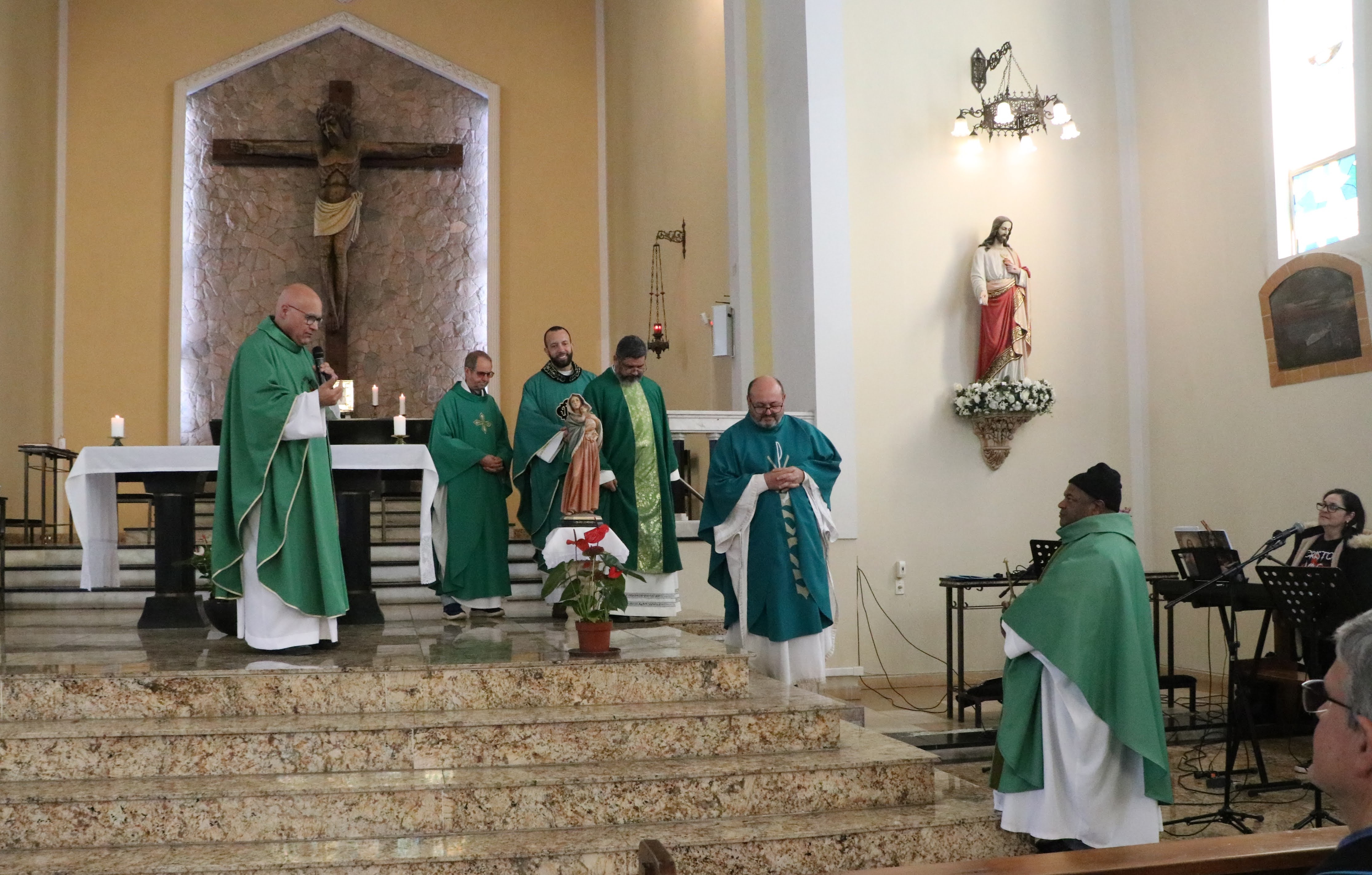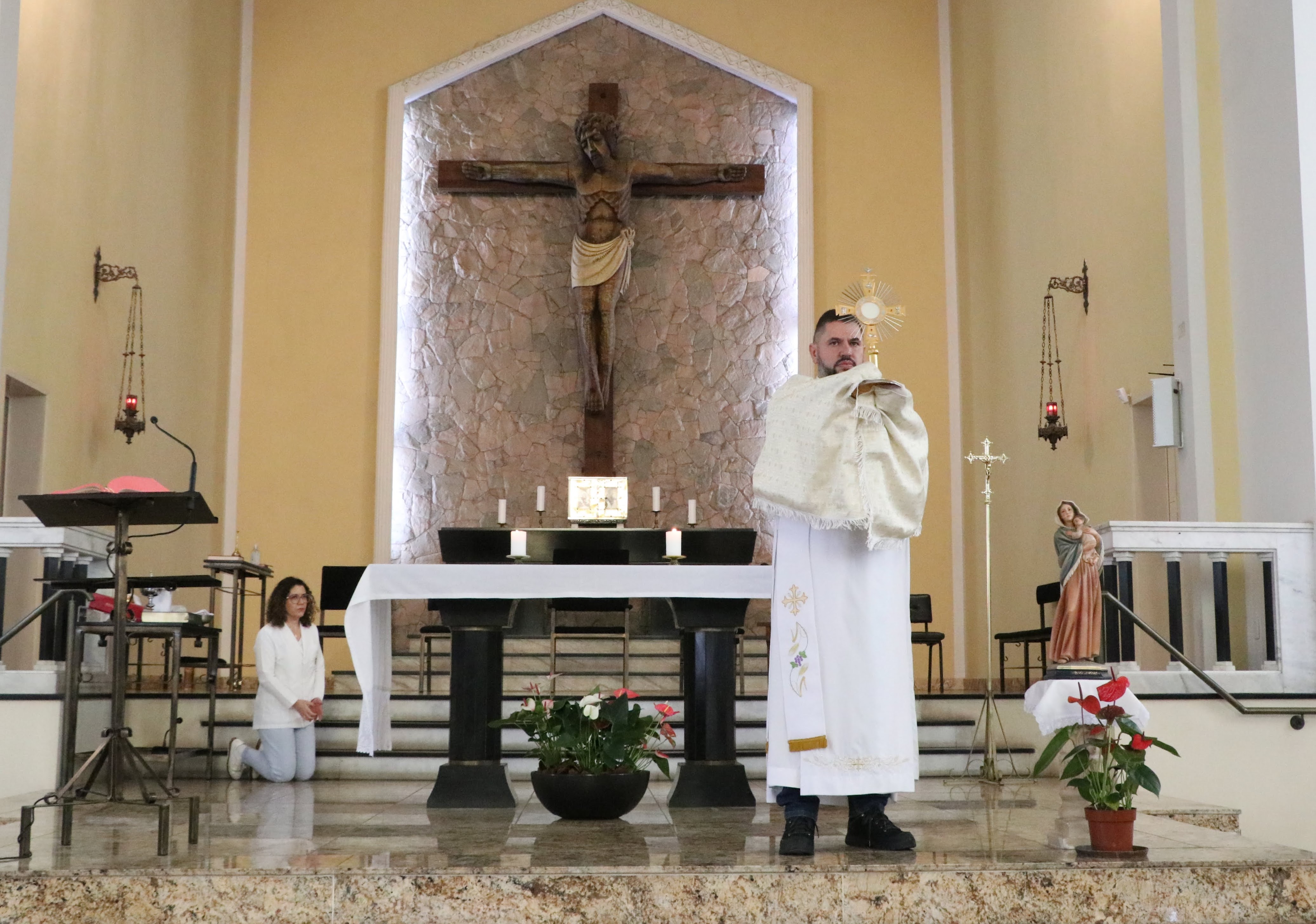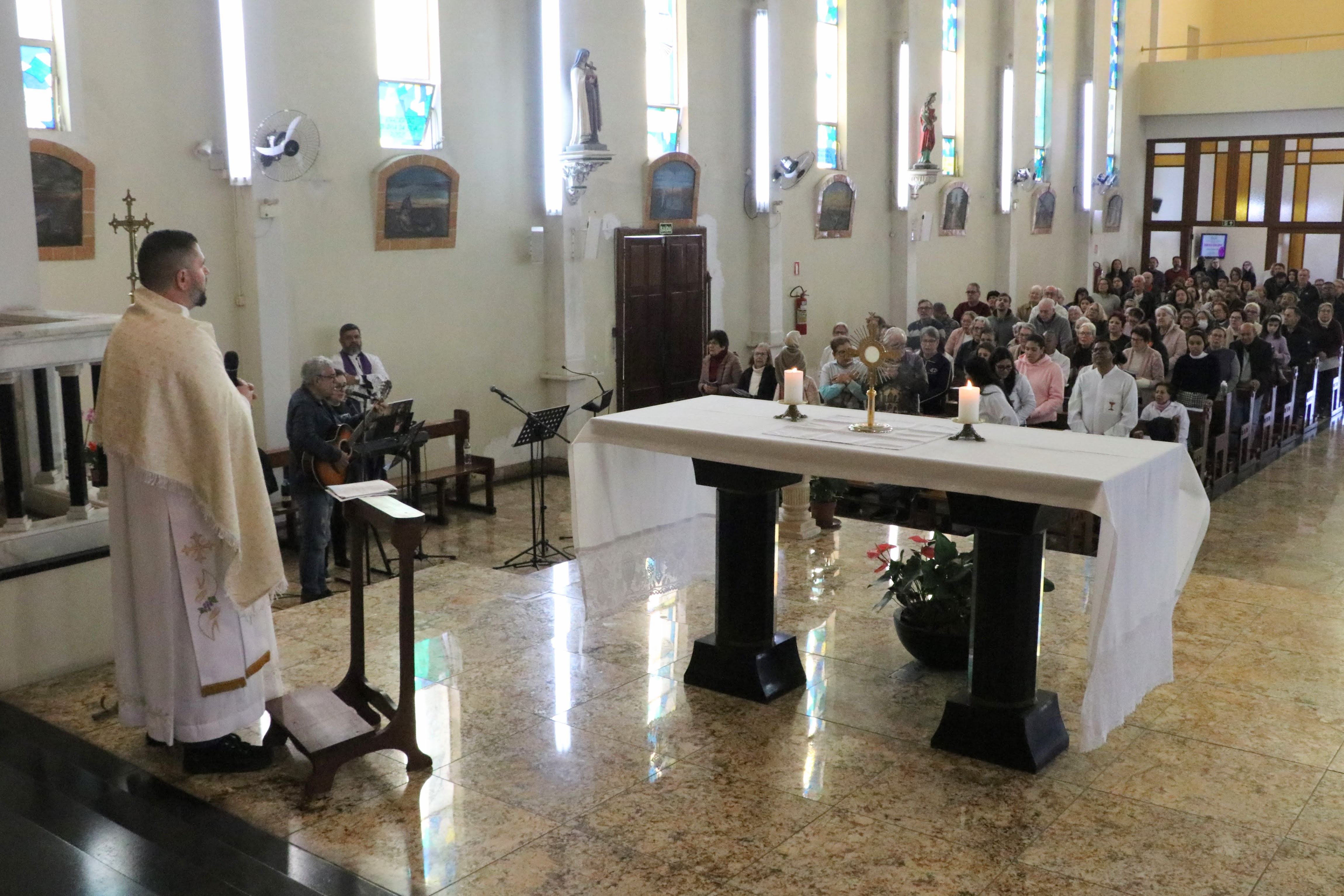 A programação incluiu a acolhida, a oração do Terço, a Adoração ao Santíssimo Sacramento e a Santa Missa, presidida pelo pároco Pe. Márcio Andrade. A celebração foi concelebrada pelos padres Milton Both, Adilson Correa da Fonseca, José Geraldo da Silva, da paróquia São José da Vila Nova, Tiago Francesco Escouto, Luís Carlos Pedroso da Silva e Gilberto Bertolini, com a participação do diácono André Luiz Klein da Silva.