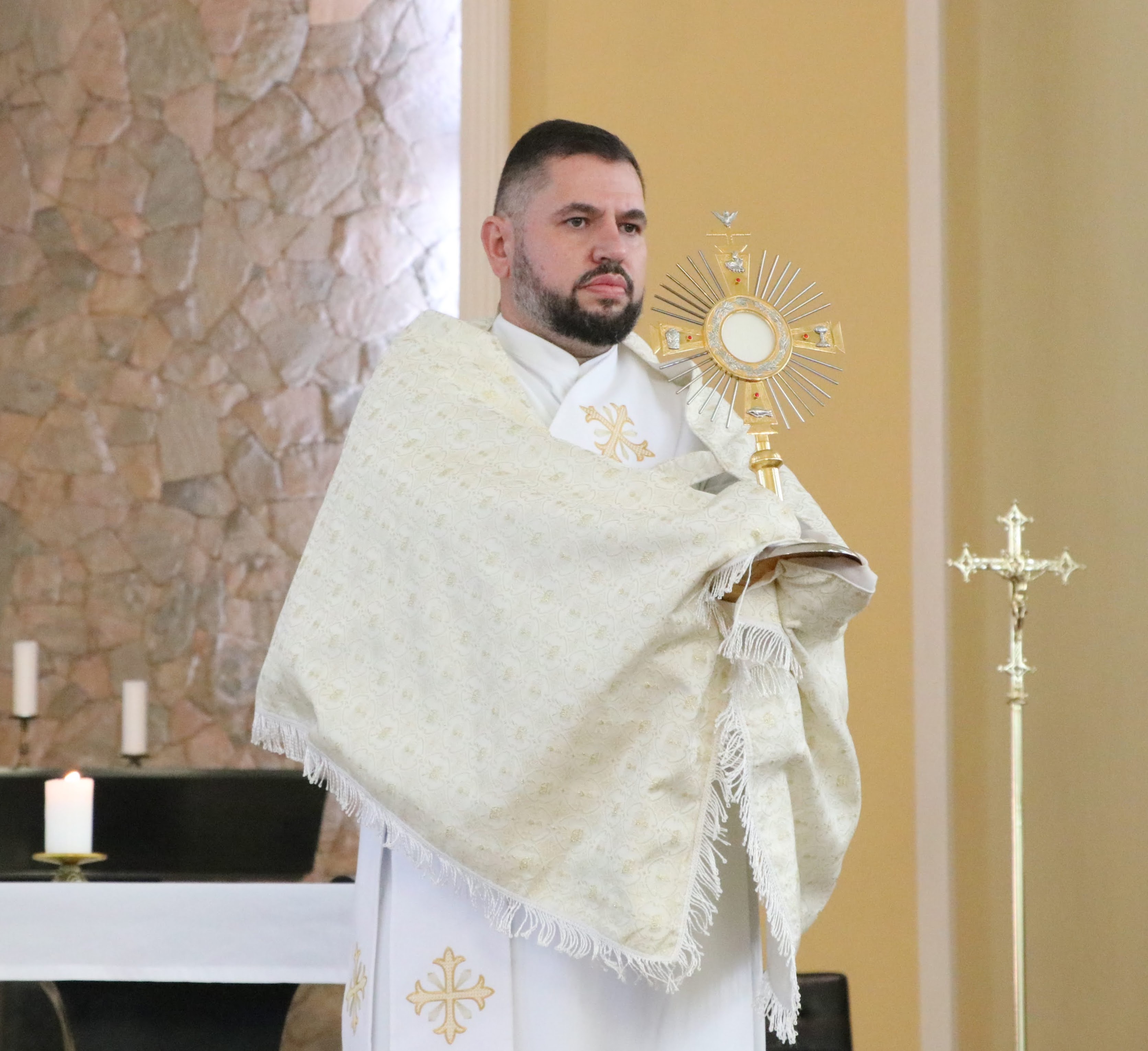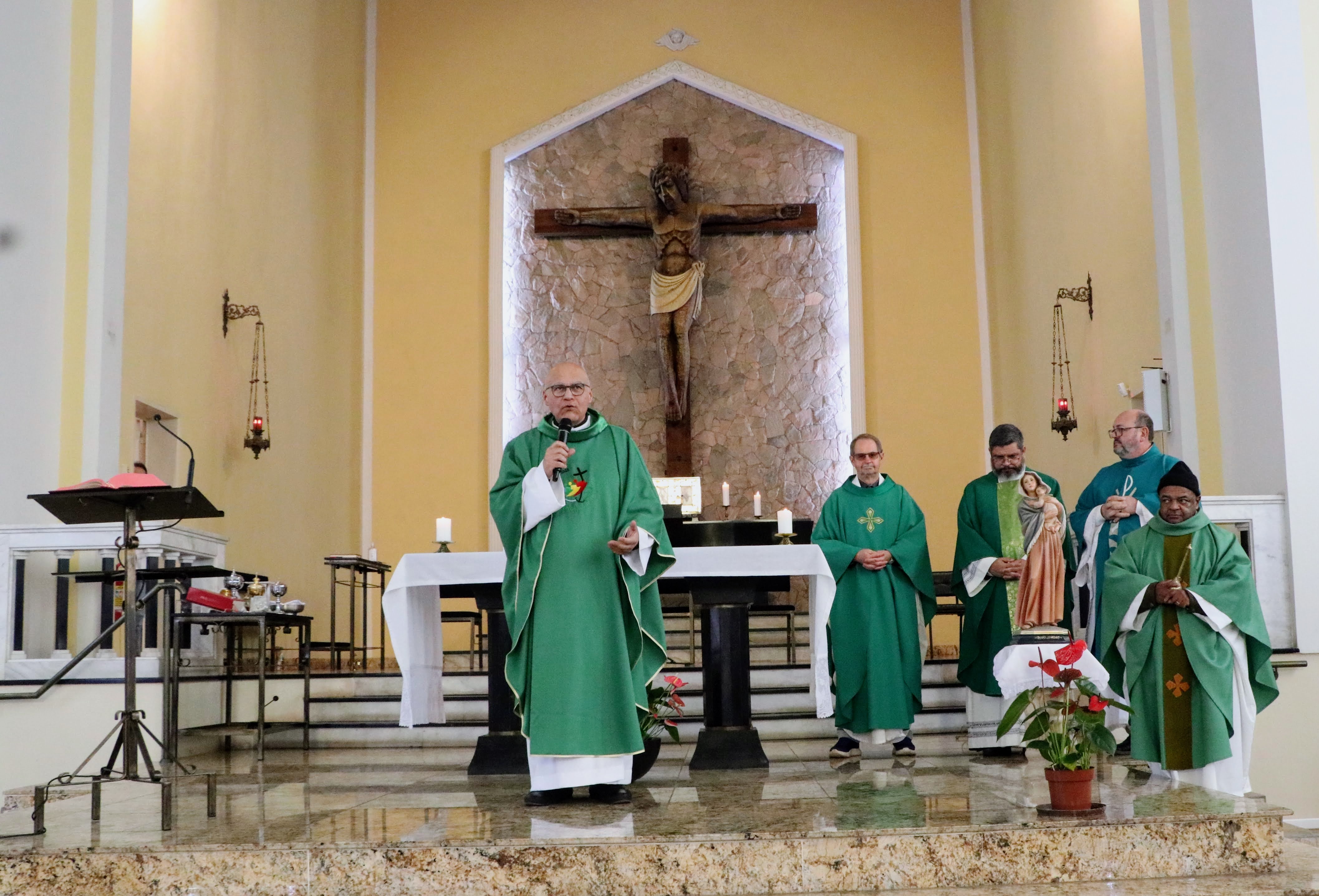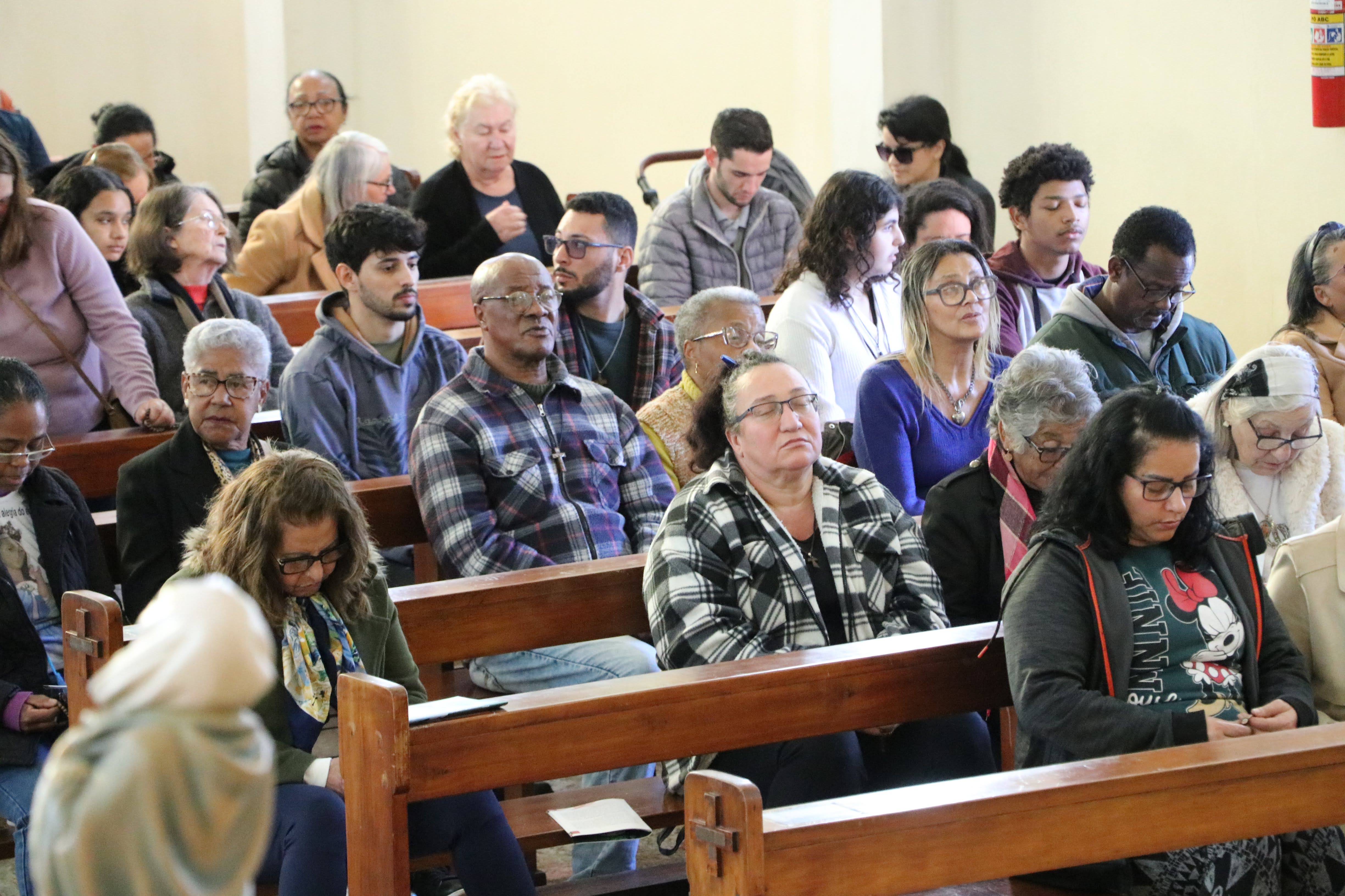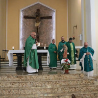 A programação incluiu a acolhida, a oração do Terço, a Adoração ao Santíssimo Sacramento e a Santa Missa, presidida pelo pároco Pe. Márcio Andrade. A celebração foi concelebrada pelos padres Milton Both, Adilson Correa da Fonseca, José Geraldo da Silva, da paróquia São José da Vila Nova, Tiago Francesco Escouto, Luís Carlos Pedroso da Silva e Gilberto Bertolini, com a participação do diácono André Luiz Klein da Silva.