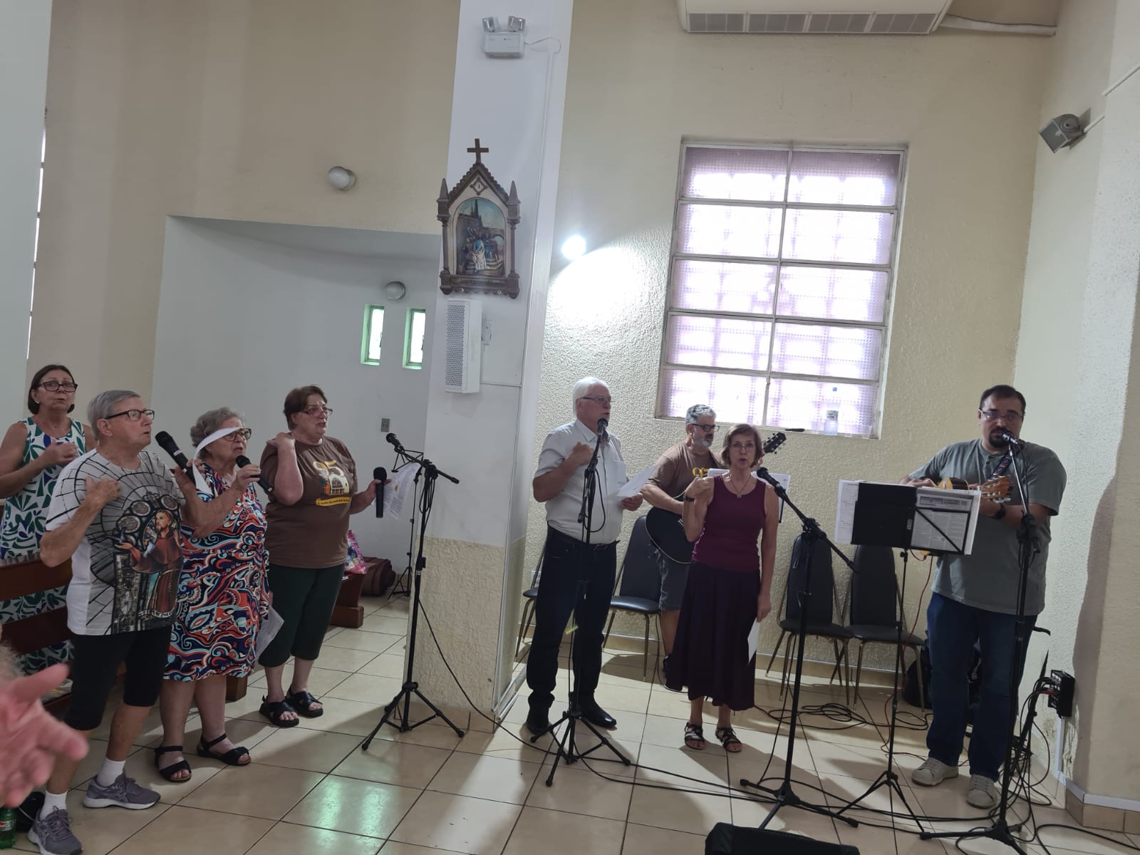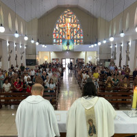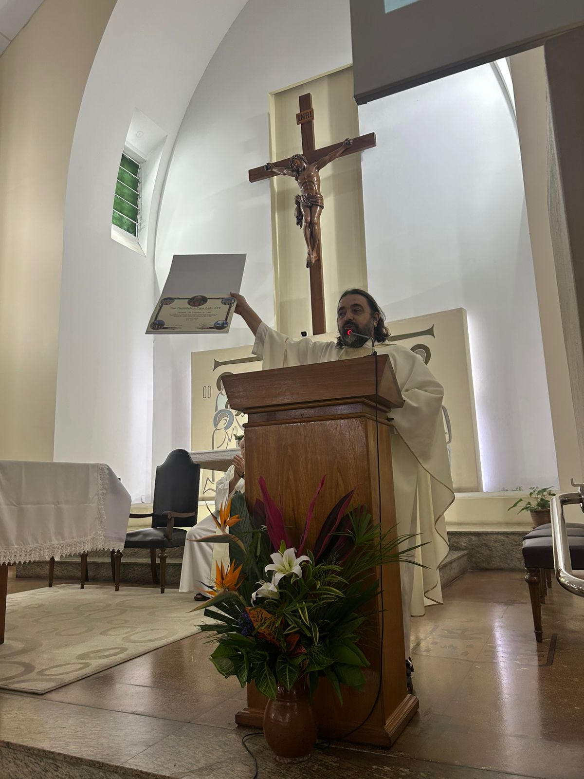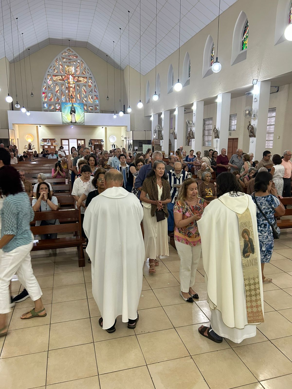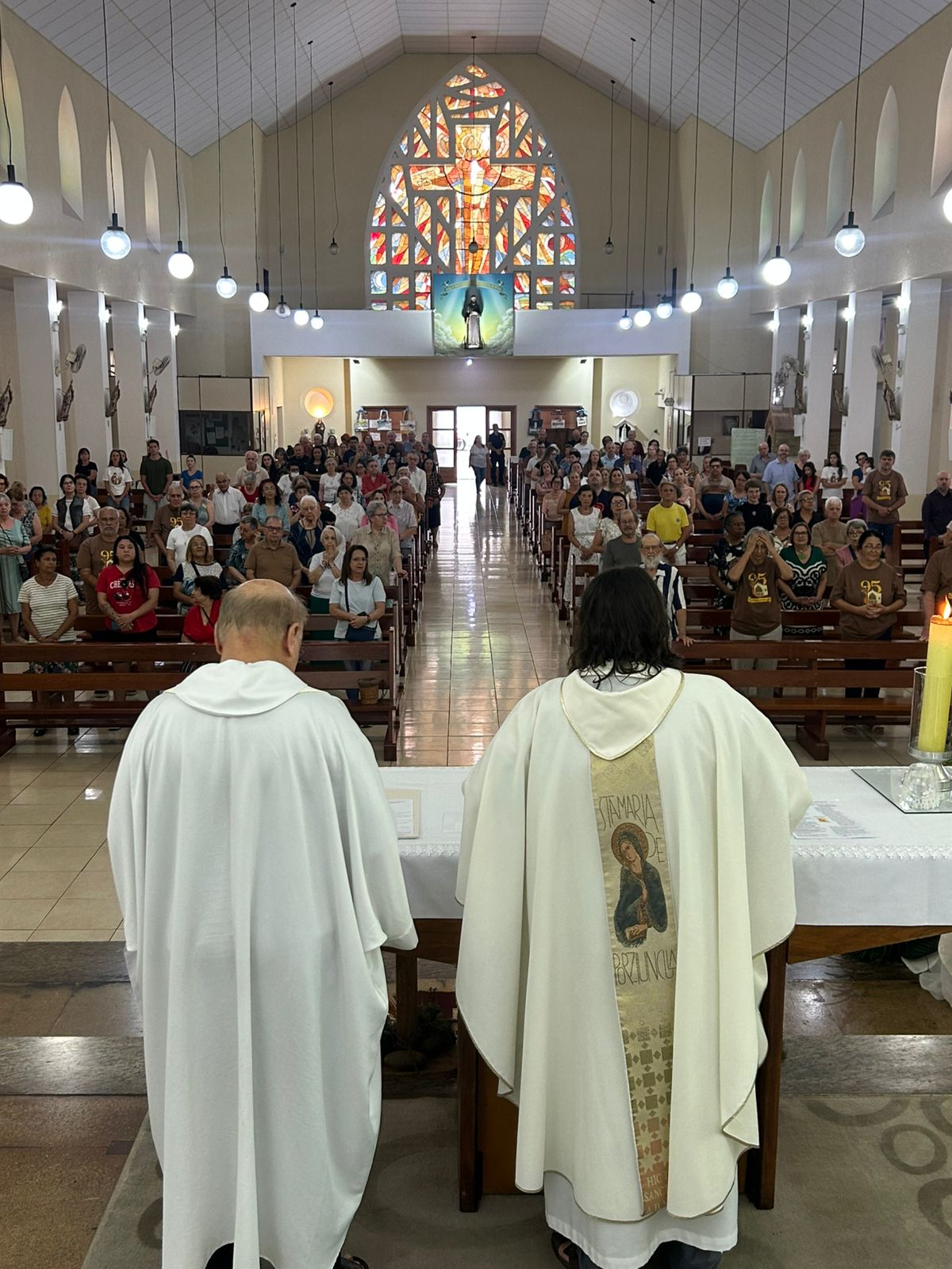 A data foi marcada por uma emocionante Celebração de Ação de Graças, presidida pelo pároco, Frei Orestes Serra, e concelebrada pelo vigário paroquial, Frei Nestor Inácio. A celebração reuniu fiéis e lideranças da comunidade em um momento de fé, memória e gratidão.