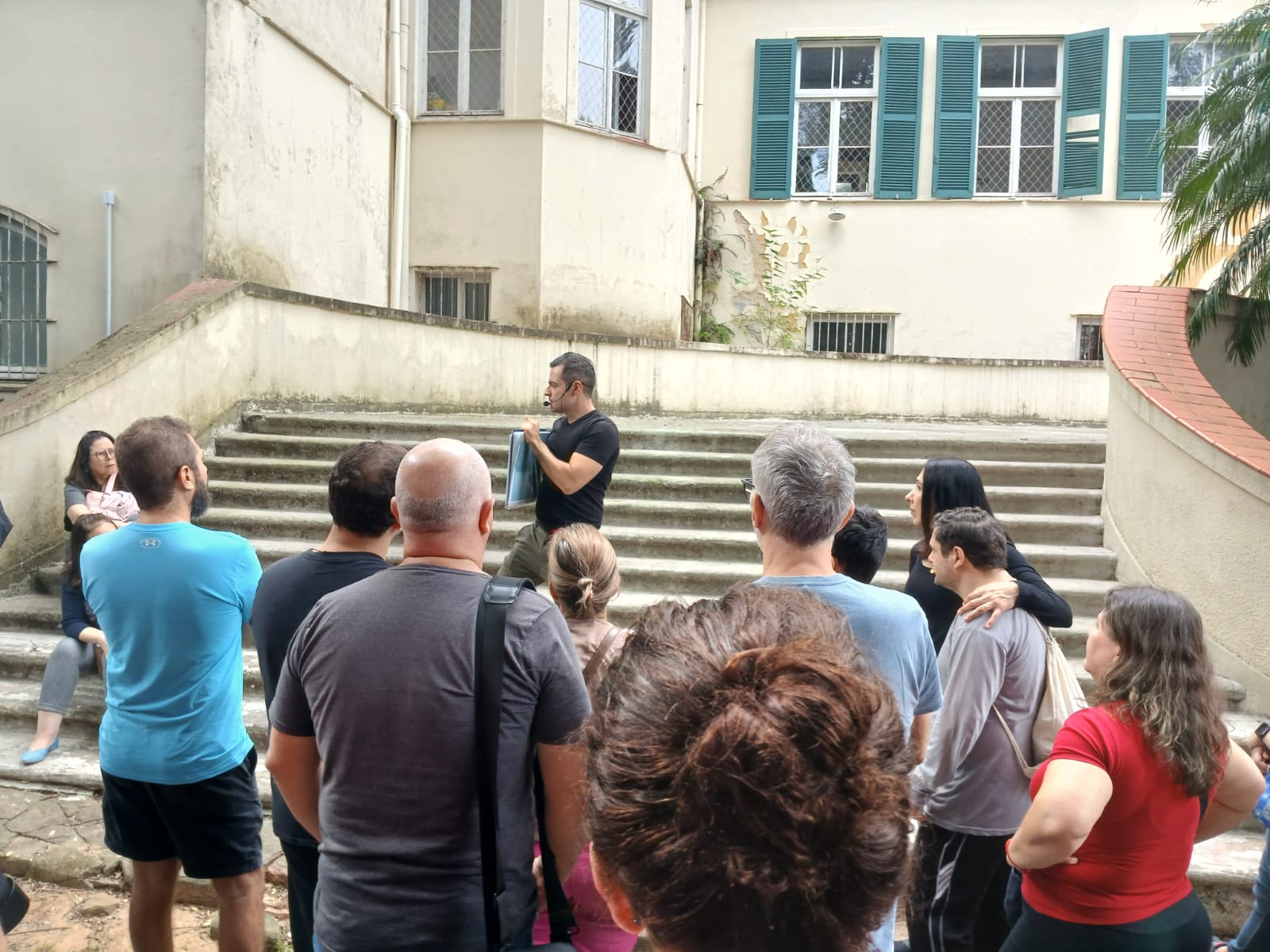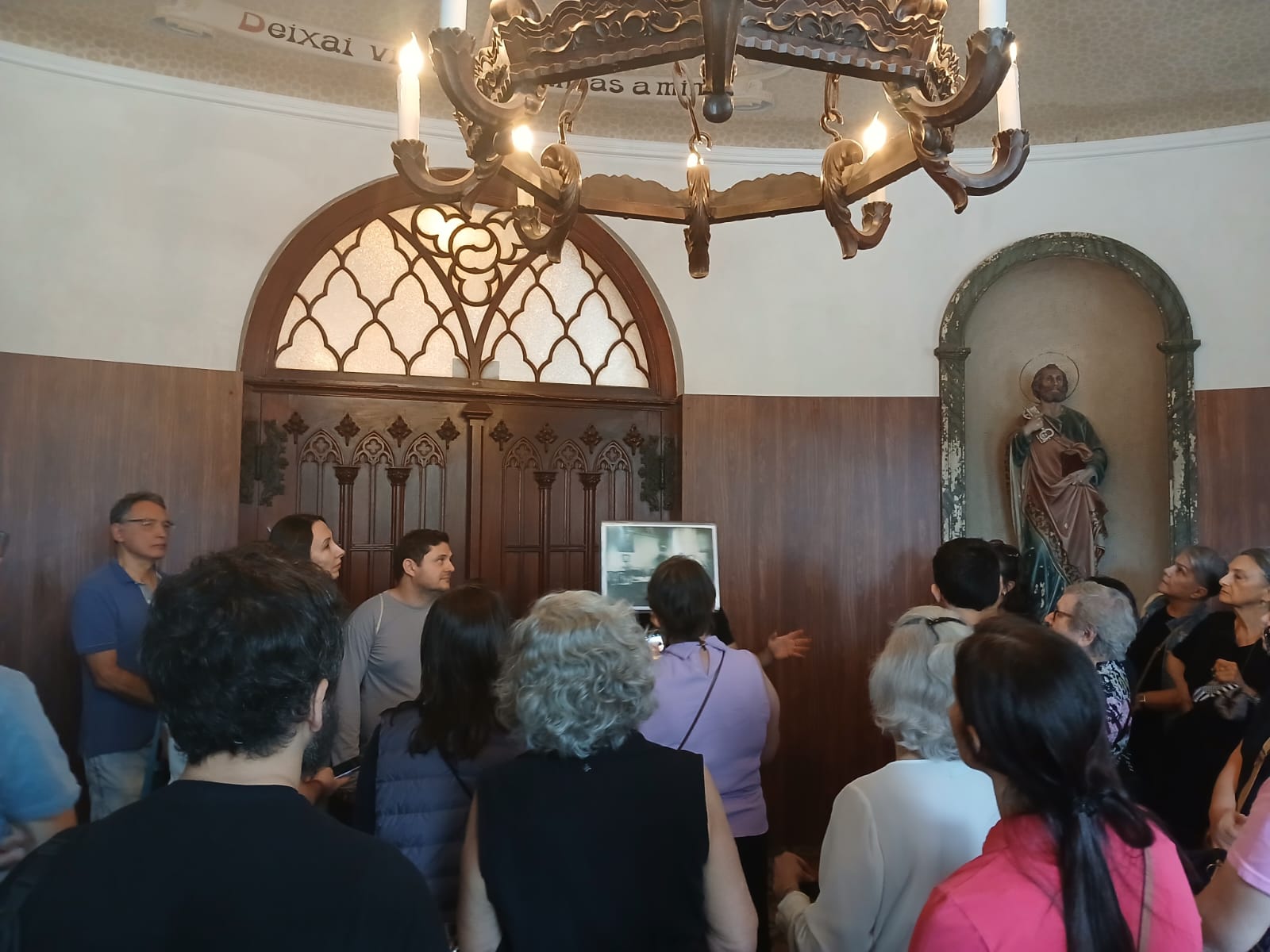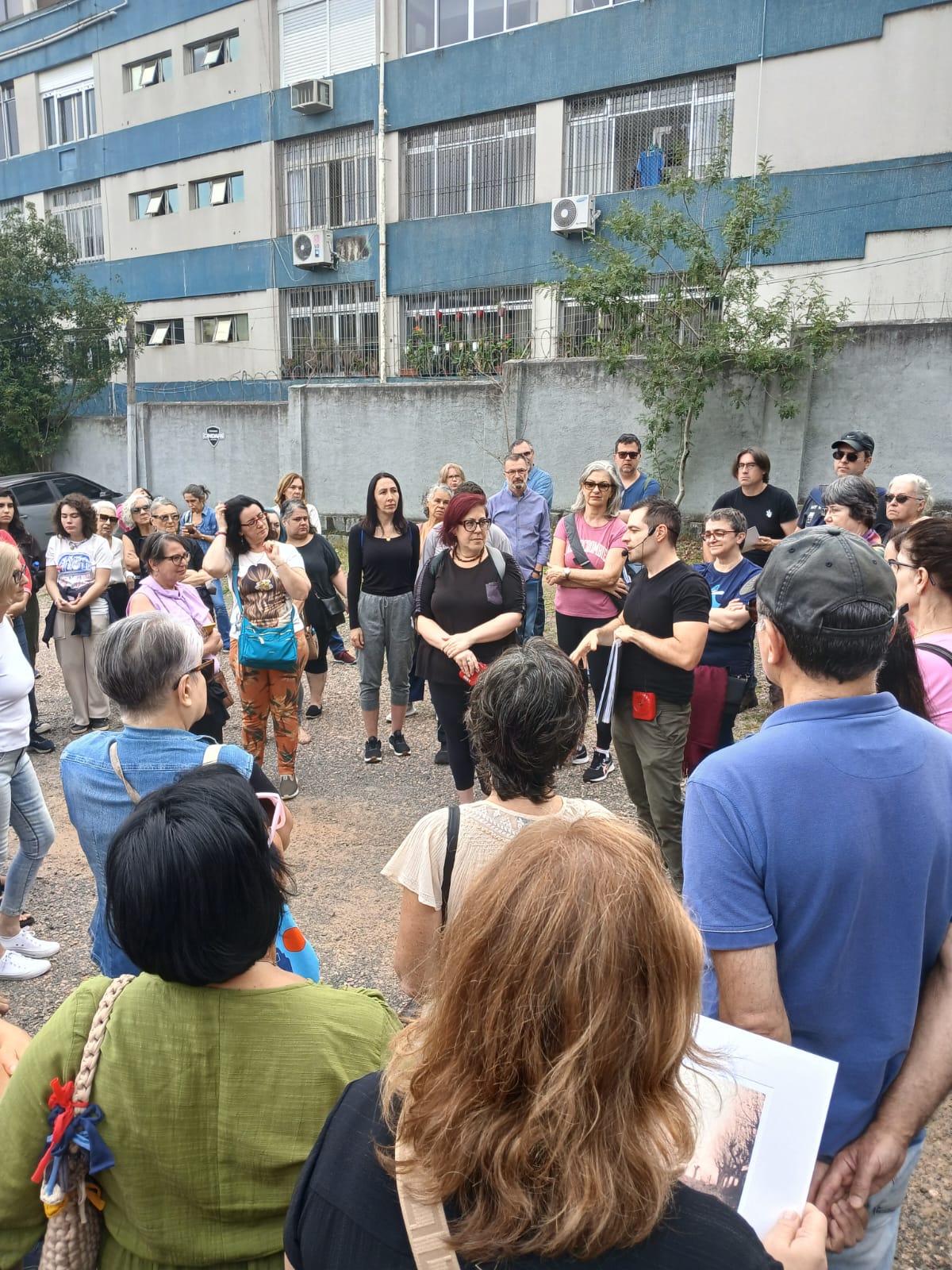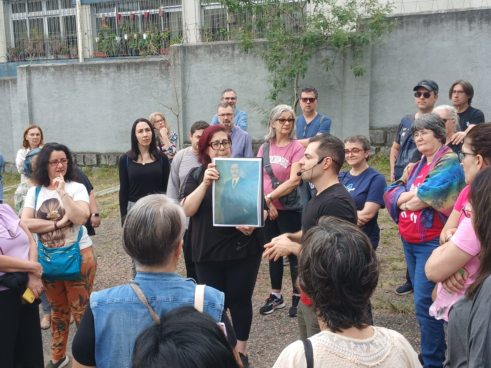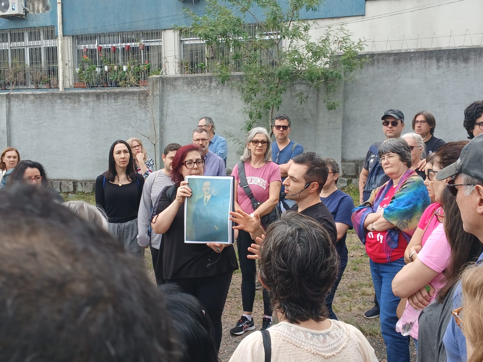 A visita guiada contou com a presença do arquiteto Lucas Volpato, responsável pelo projeto de restauro da edificação da Pia Chaves Barcelos, concluído em 2022. Ele destacou a relevância histórica e social do espaço, que no passado acolheu crianças em situação de vulnerabilidade, especialmente de famílias que viviam ou trabalhavam nas imediações da antiga estrada Protásio Alves, rota entre Viamão e o centro da cidade.