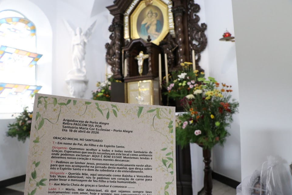 O Santuário Mariano de Schoenstatt, na Vila Assunção, no último sábado, 18,tornou-se o cenário de um momento profundo de interiorização para os comunicadores católicos. A Pascom do Vicariato Sul de Porto Alegre realizou seu Retiro Espiritual, reunindo pasconeiros e pasconeiras das paróquias Belém, Menino Jesus de Praga, Nossa Senhora Aparecida, Nossa Senhora das Graças e Nossa Senhora da Misericórdia (Restinga), para uma manhã de reflexão e, acima de tudo, renovação do chamado ministerial.